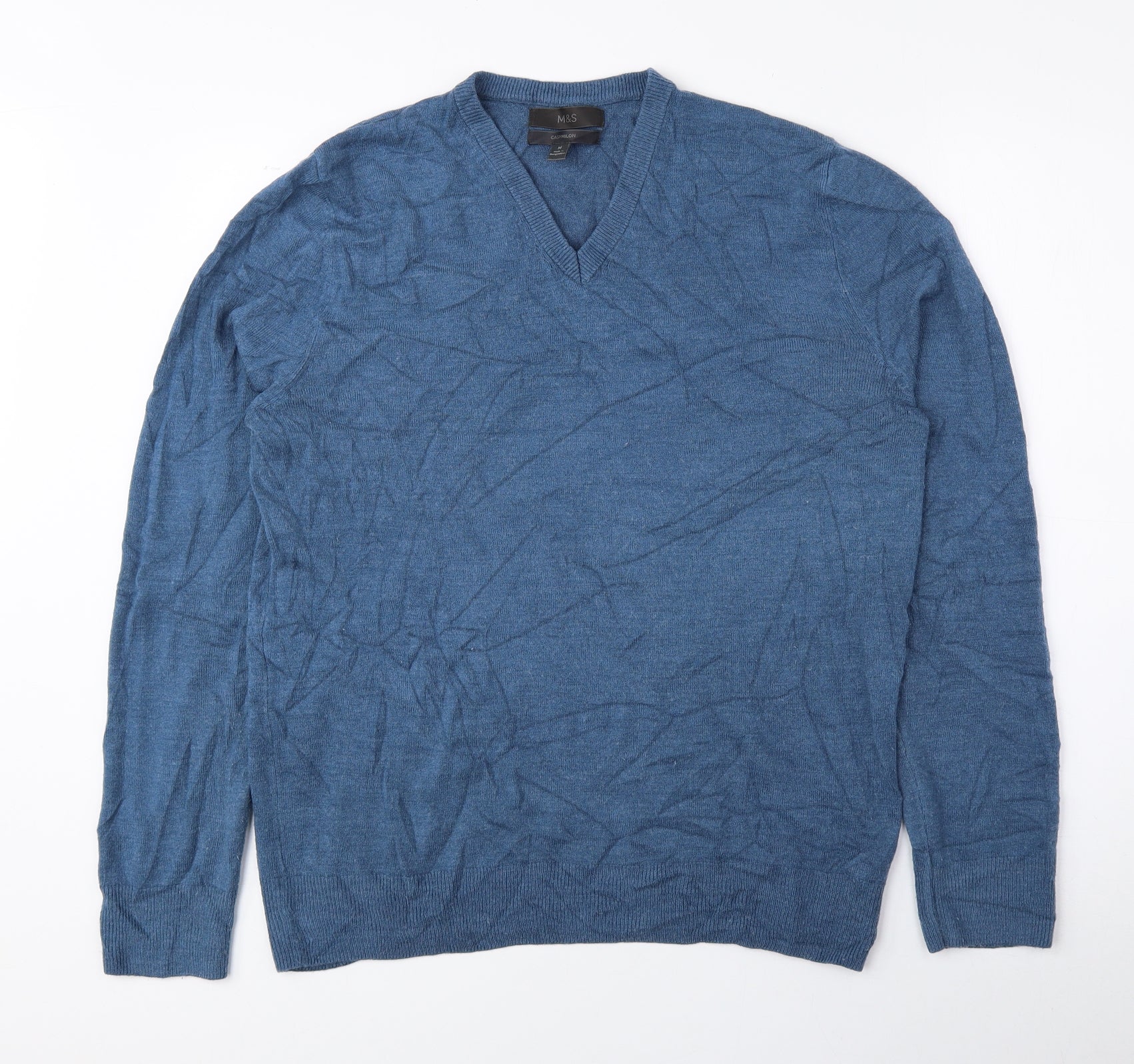 Marks and Spencer Mens Blue V-Neck Acrylic Pullover Jumper Size M