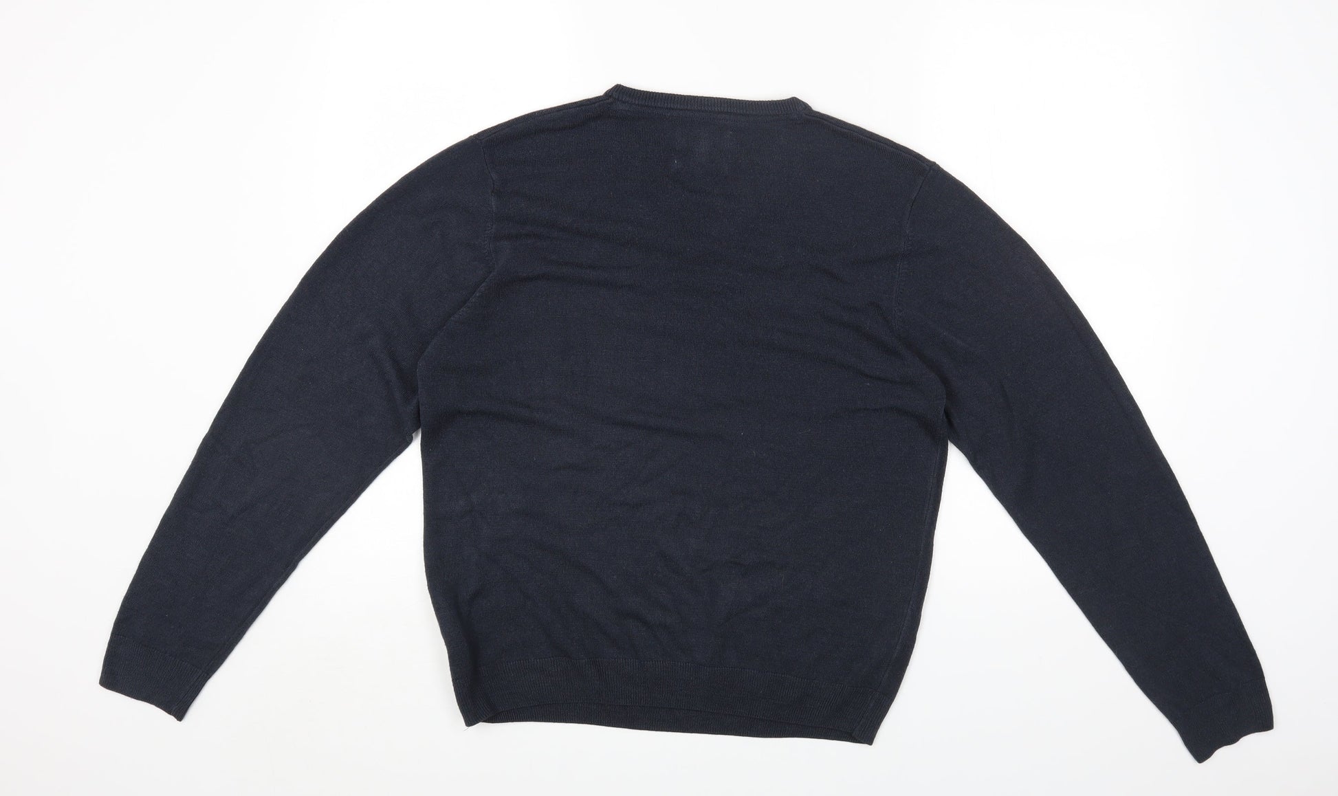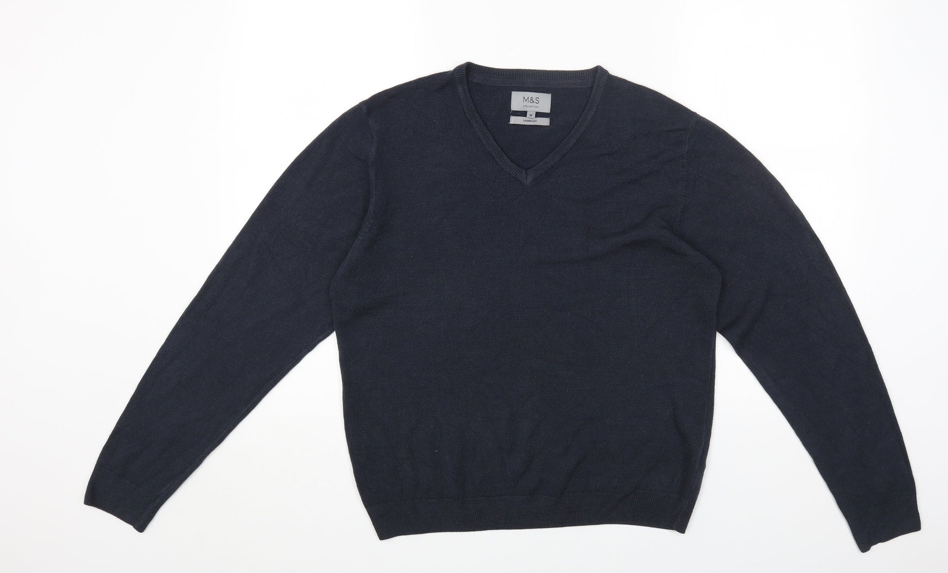 Marks and Spencer Mens Blue V-Neck Acrylic Pullover Jumper Size M