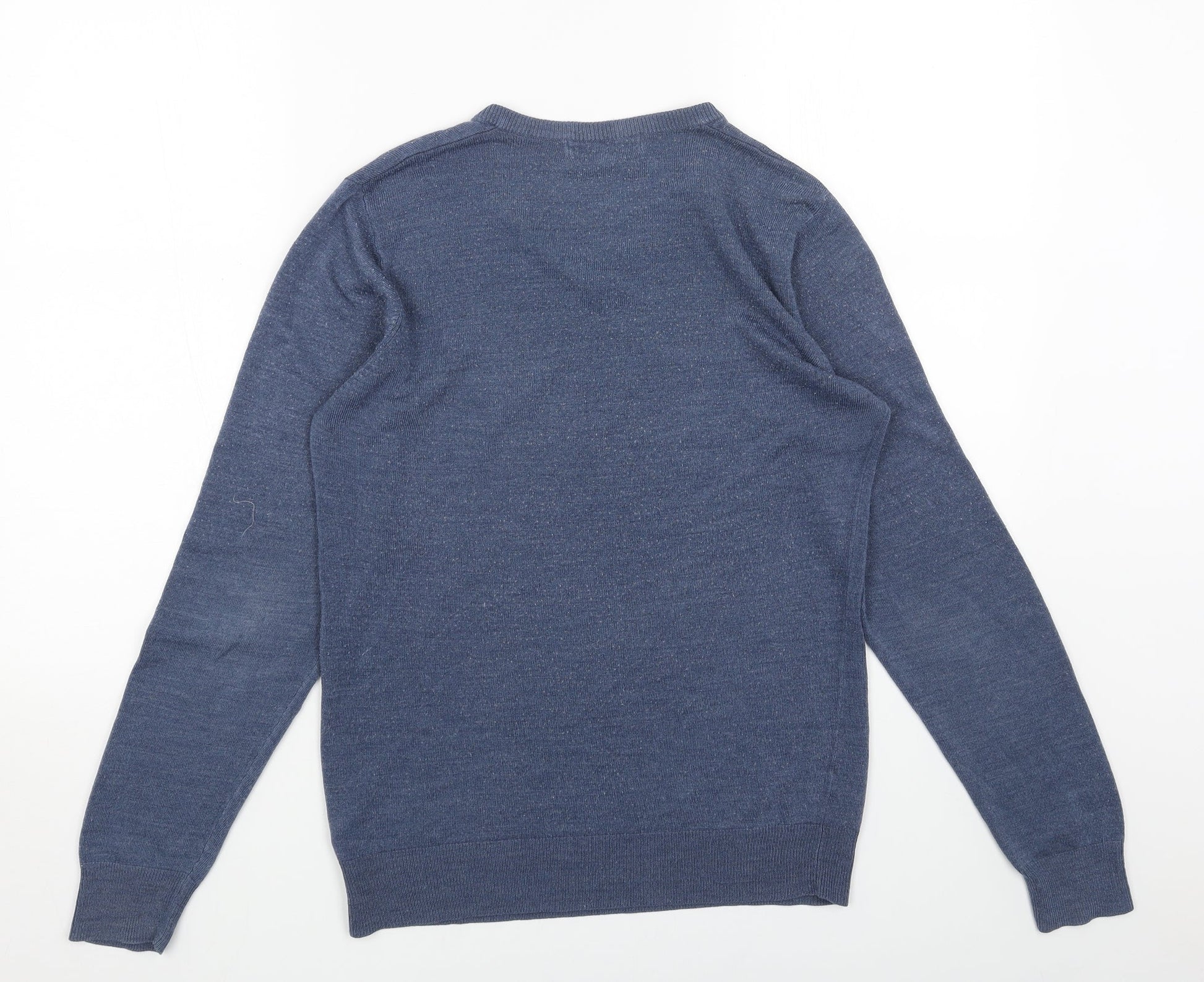 Marks and Spencer Mens Blue V-Neck Acrylic Pullover Jumper Size S