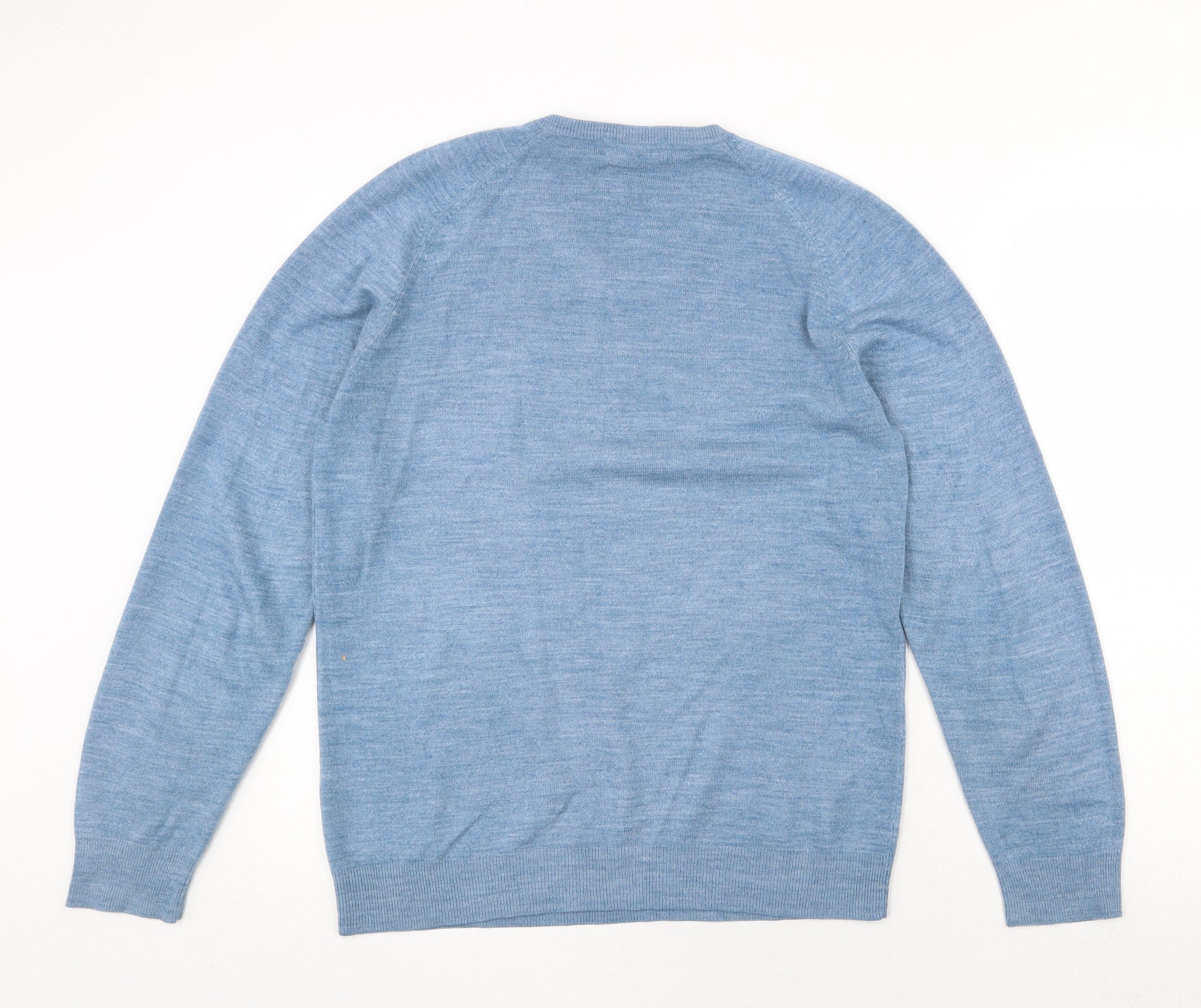 Marks and Spencer Mens Blue V-Neck Acrylic Pullover Jumper Size S Long Sleeve