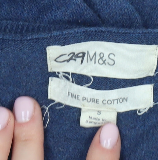 Marks and Spencer Men's Blue V-Neck Cotton Jumper, Size S