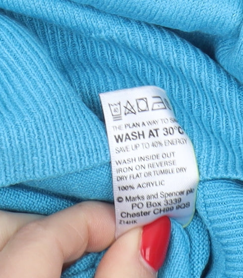 Marks and Spencer Men's Blue V-Neck Jumper - Medium