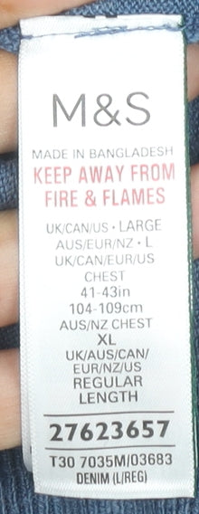 Marks and Spencer Men's Blue V-Neck Jumper - Size L