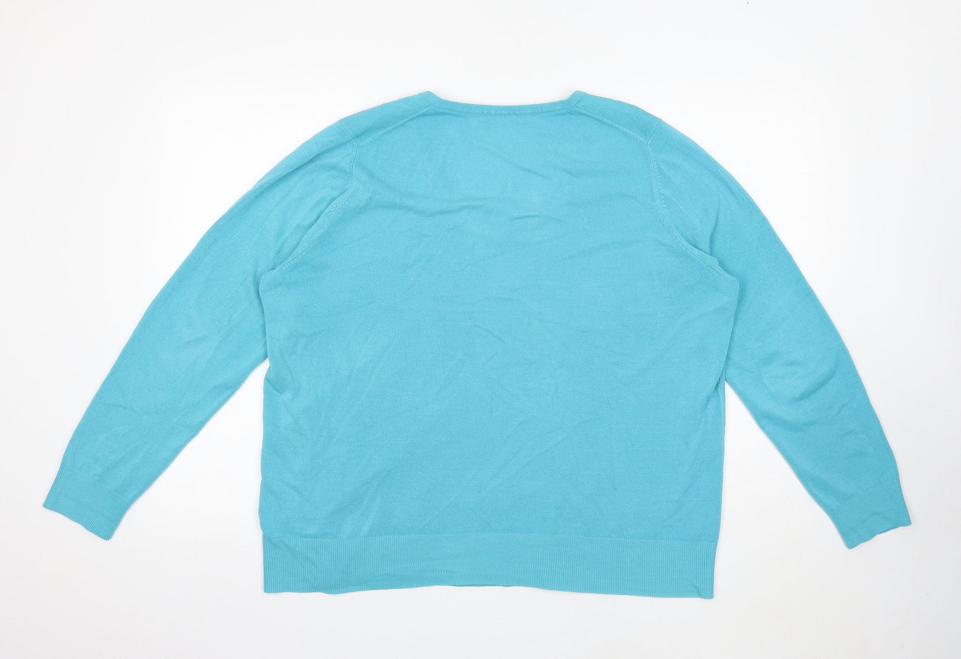 Marks and Spencer Mens Blue V-Neck Polyester Pullover Jumper Size L