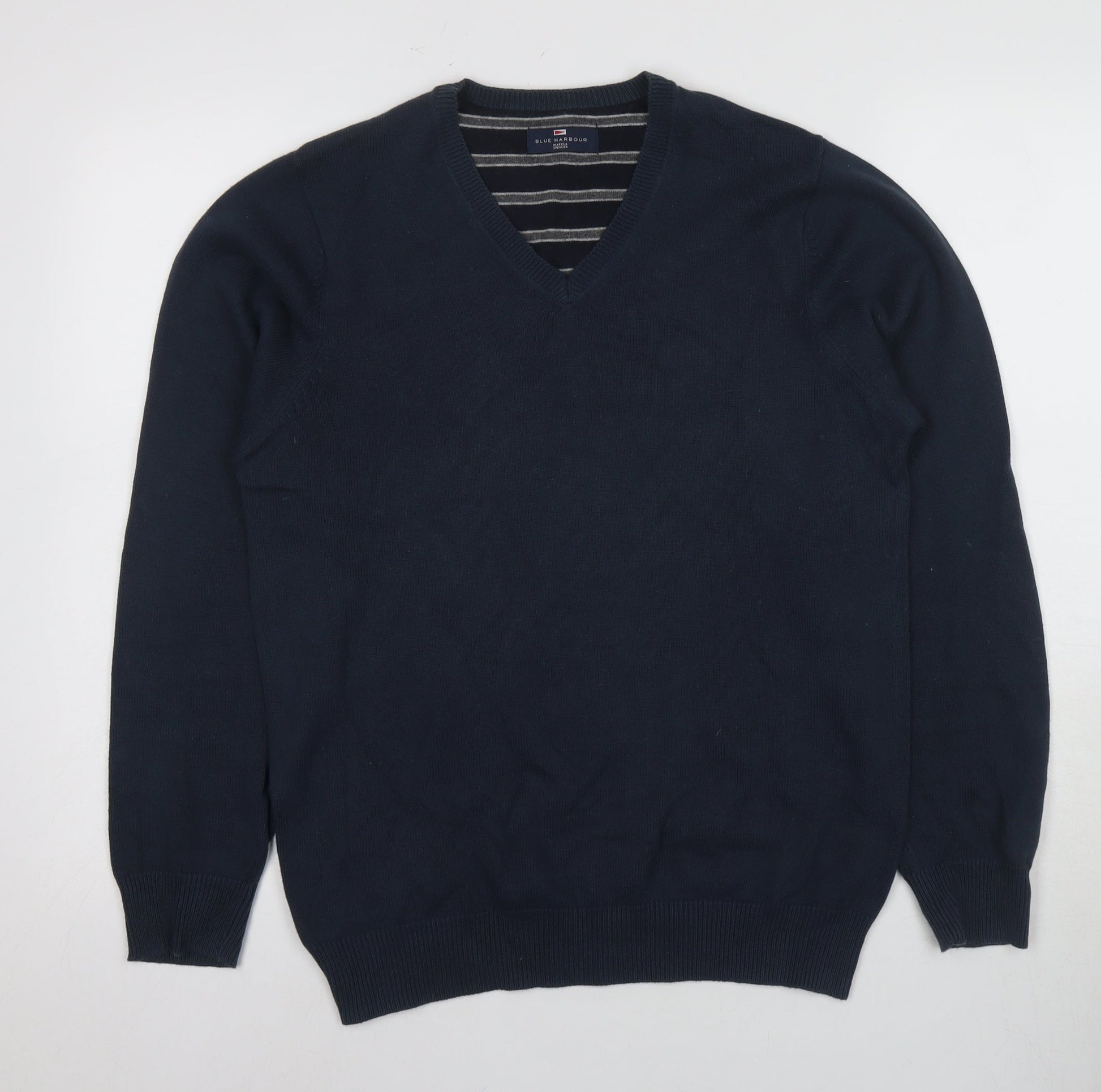 Marks and Spencer Men's Blue V-Neck Pullover Jumper S