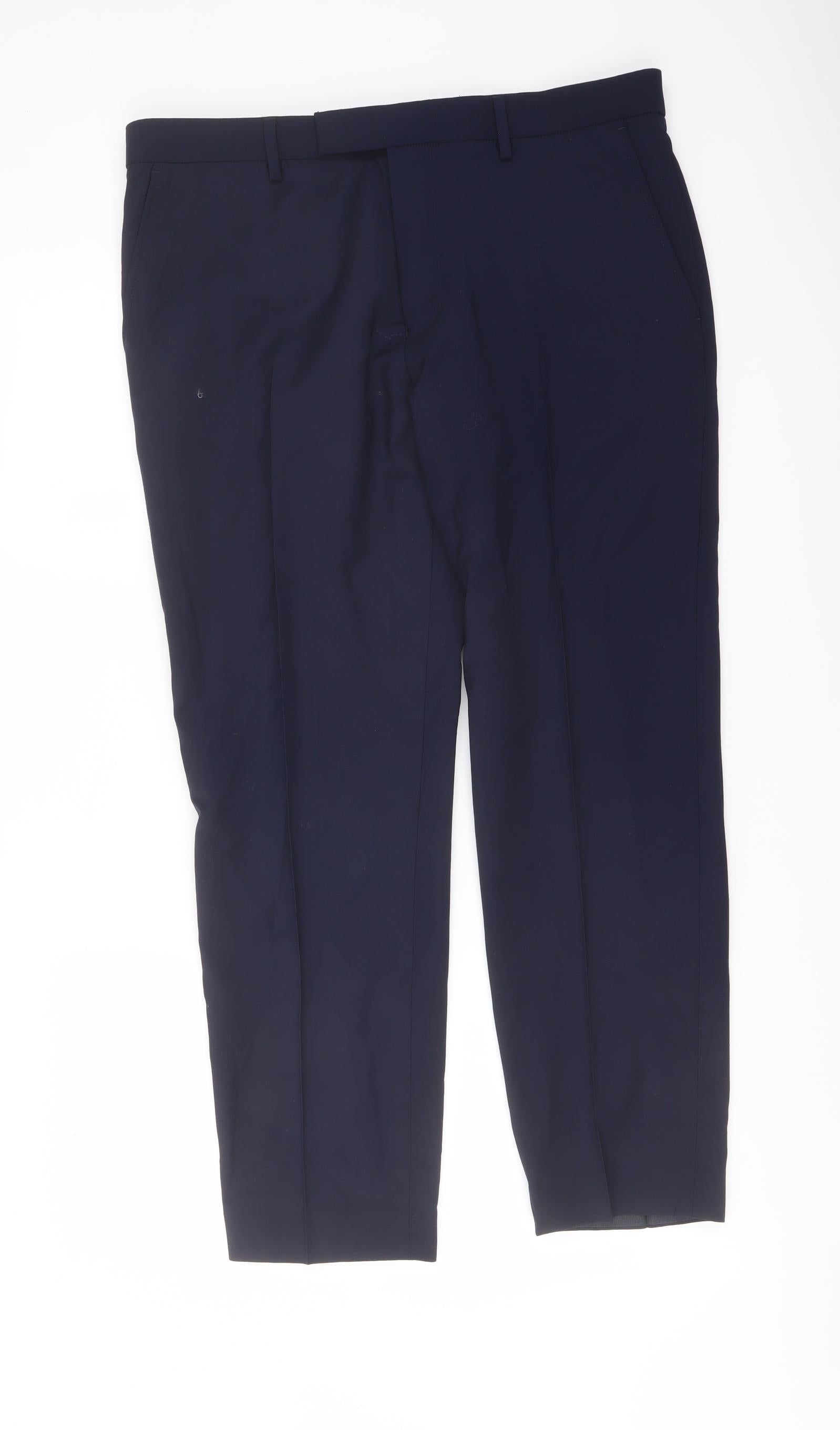Marks and Spencer Mens Blue Wool Trousers Size 34 in L28 in Slim Buckle