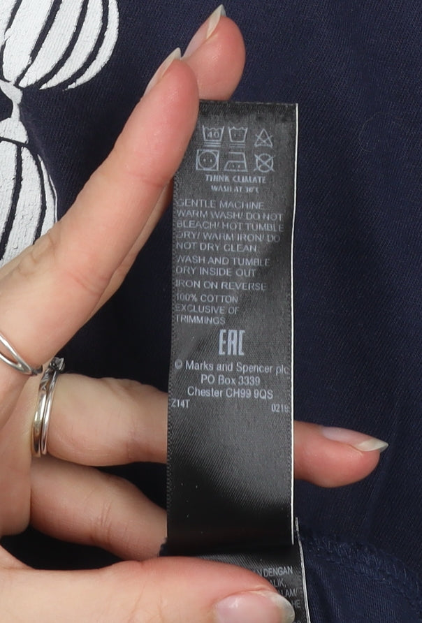 Marks and Spencer Men's Blue XL Japanese Graphic Cotton T-Shirt