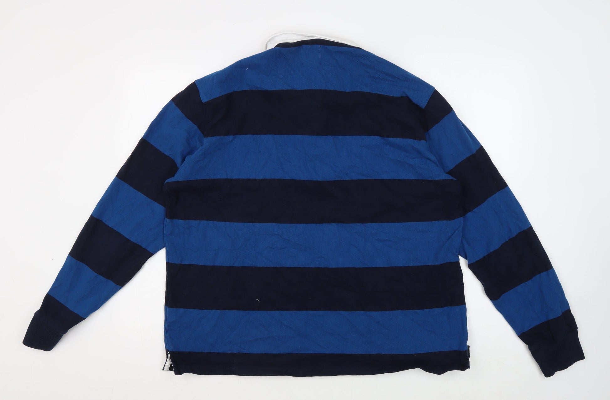 Marks and Spencer Men's Blue XL Striped Long Sleeve Polo
