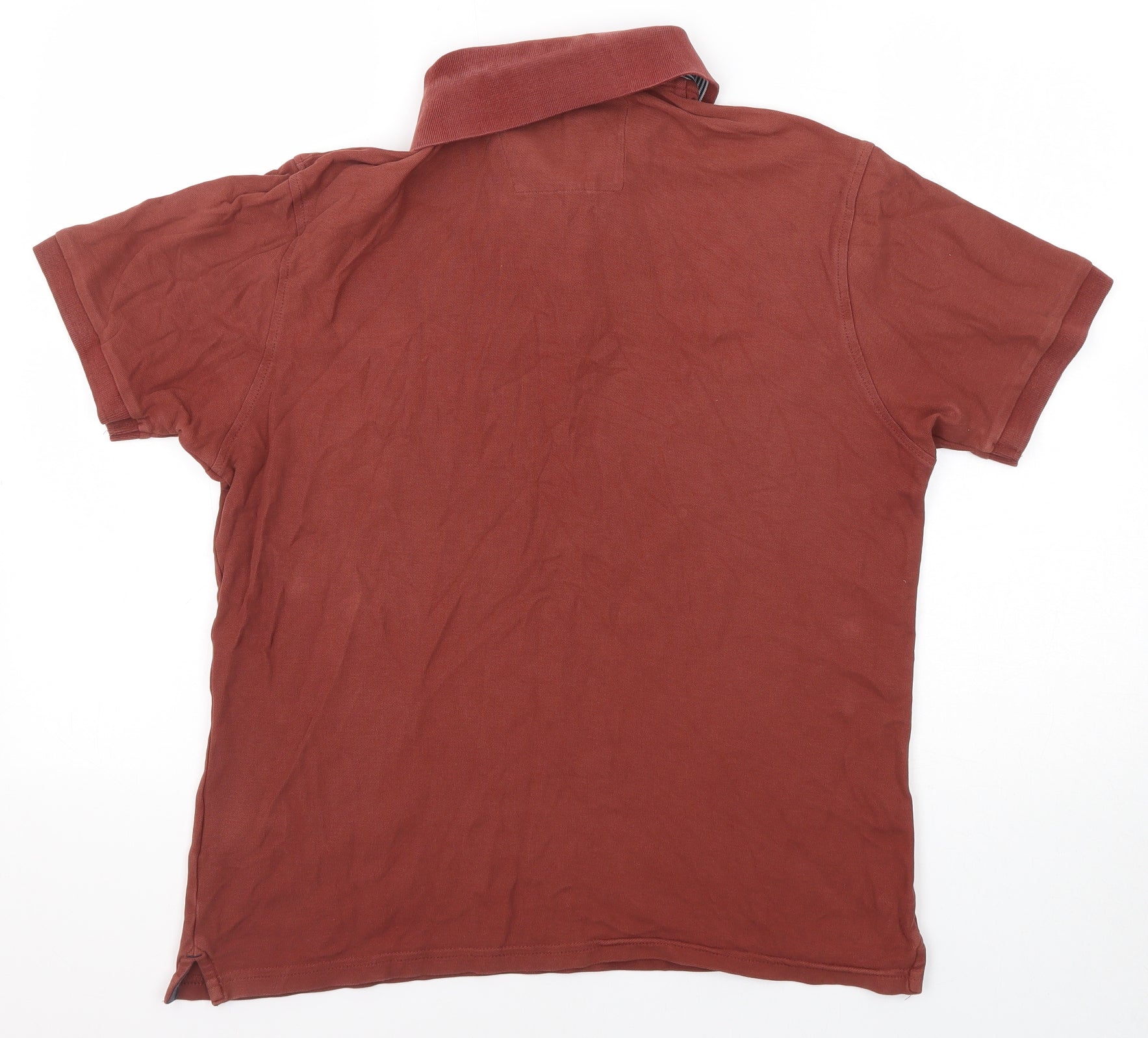 Marks and Spencer Mens Brown Cotton Polo Size M Collared Button