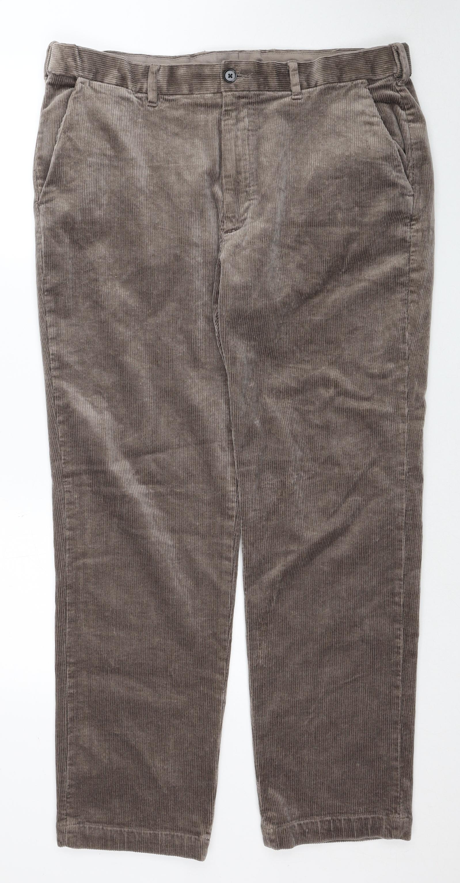Marks and Spencer Mens Brown Cotton Trousers Size 38 in L31 in Regular Zip