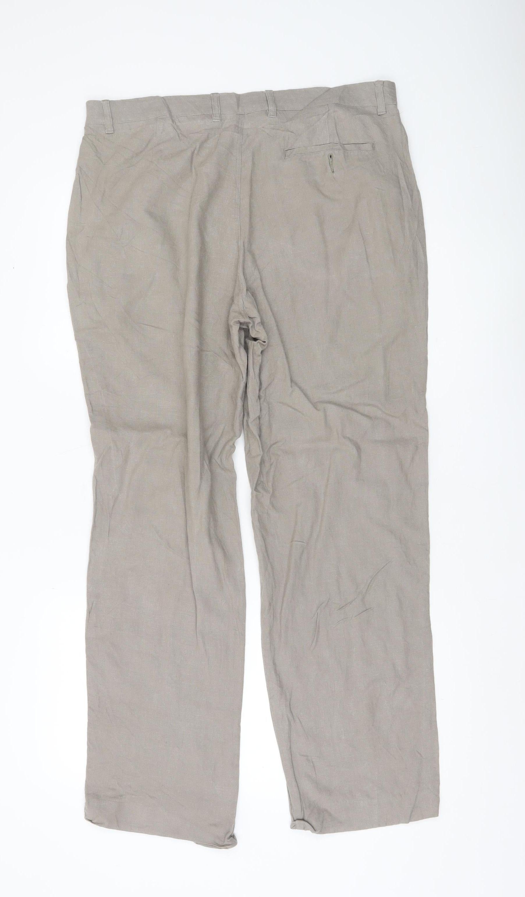 Marks and Spencer Mens Brown Linen Blend Chino Trousers 34W 31L