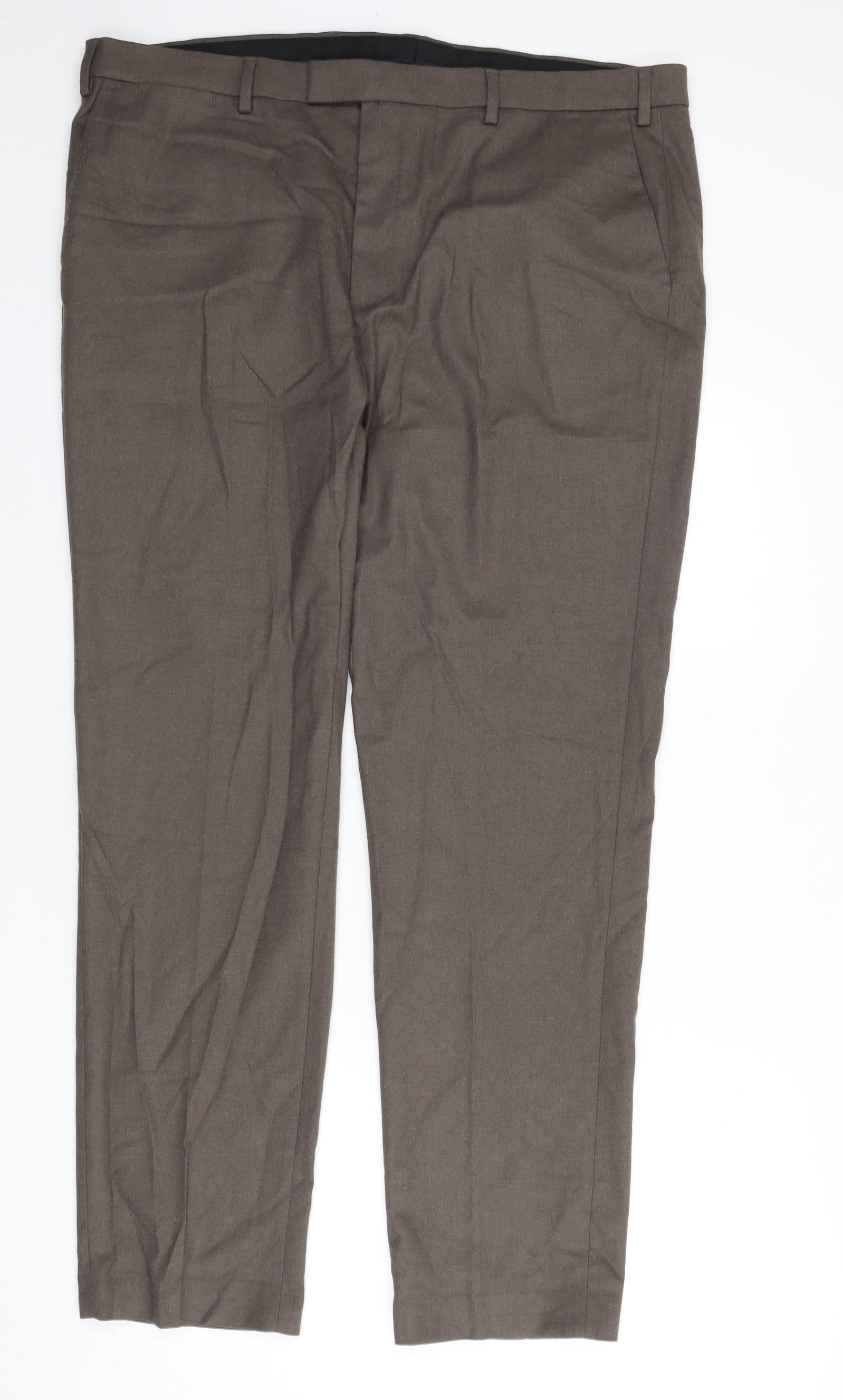 Marks and Spencer Mens Brown Polyester Dress Pants Trousers Size 42 in L33 in Regular Zip