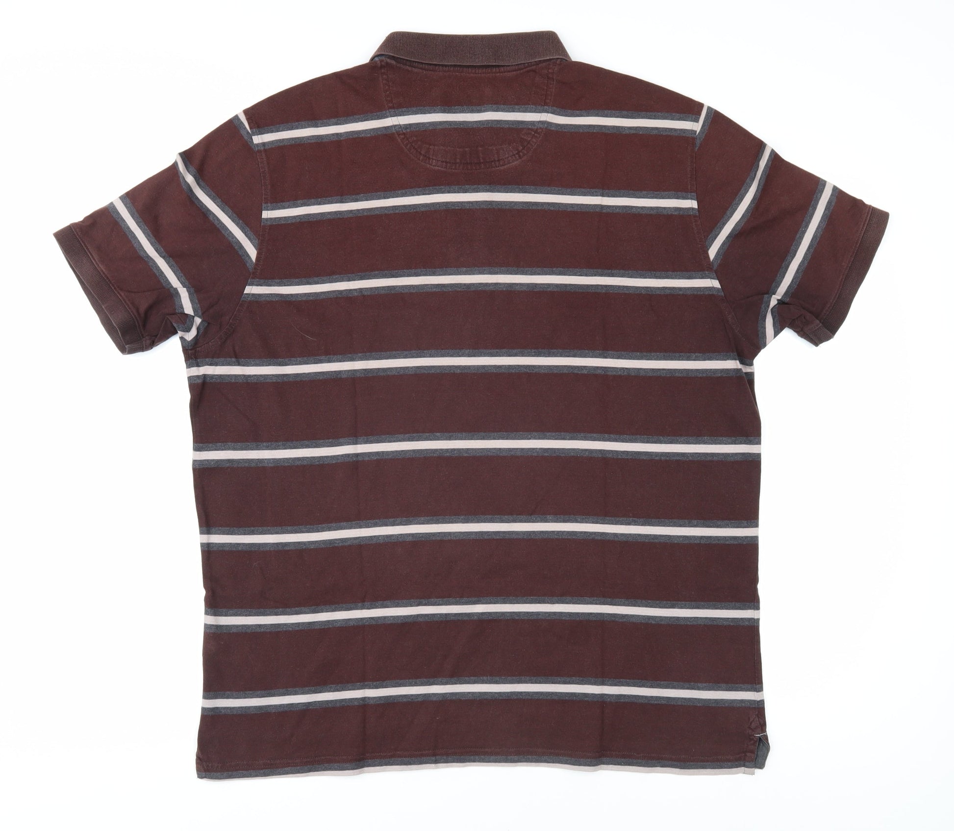 Marks and Spencer Men's Brown Striped Polo Shirt XL