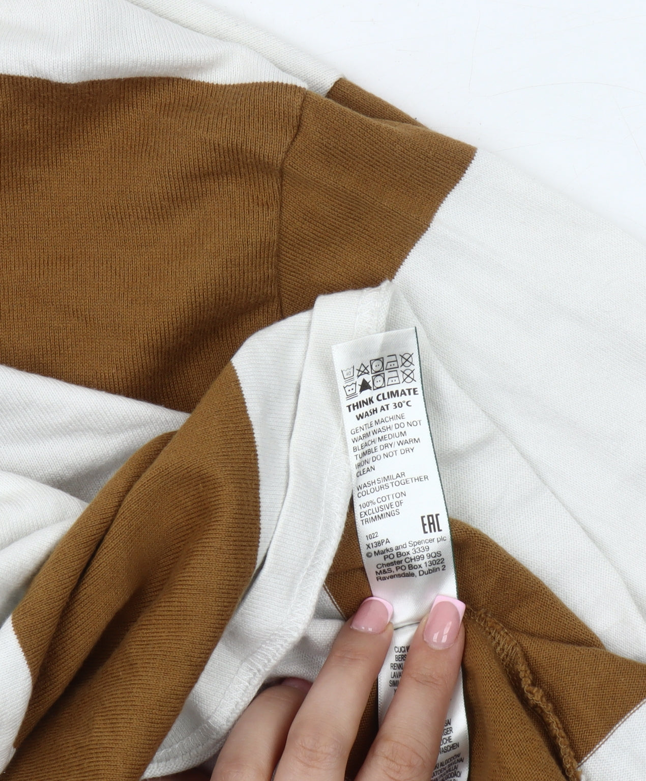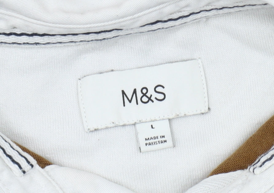 Marks and Spencer Men's Brown Striped Polo, Size L