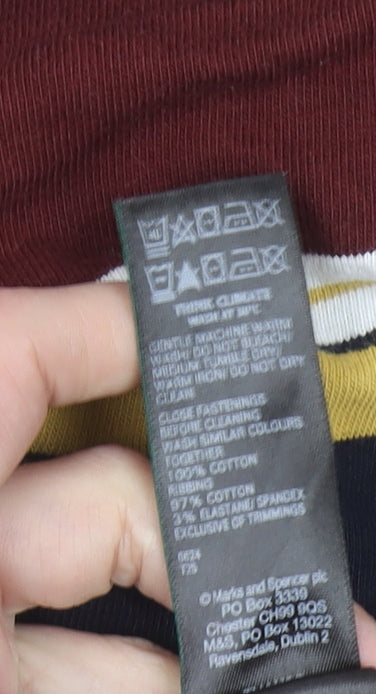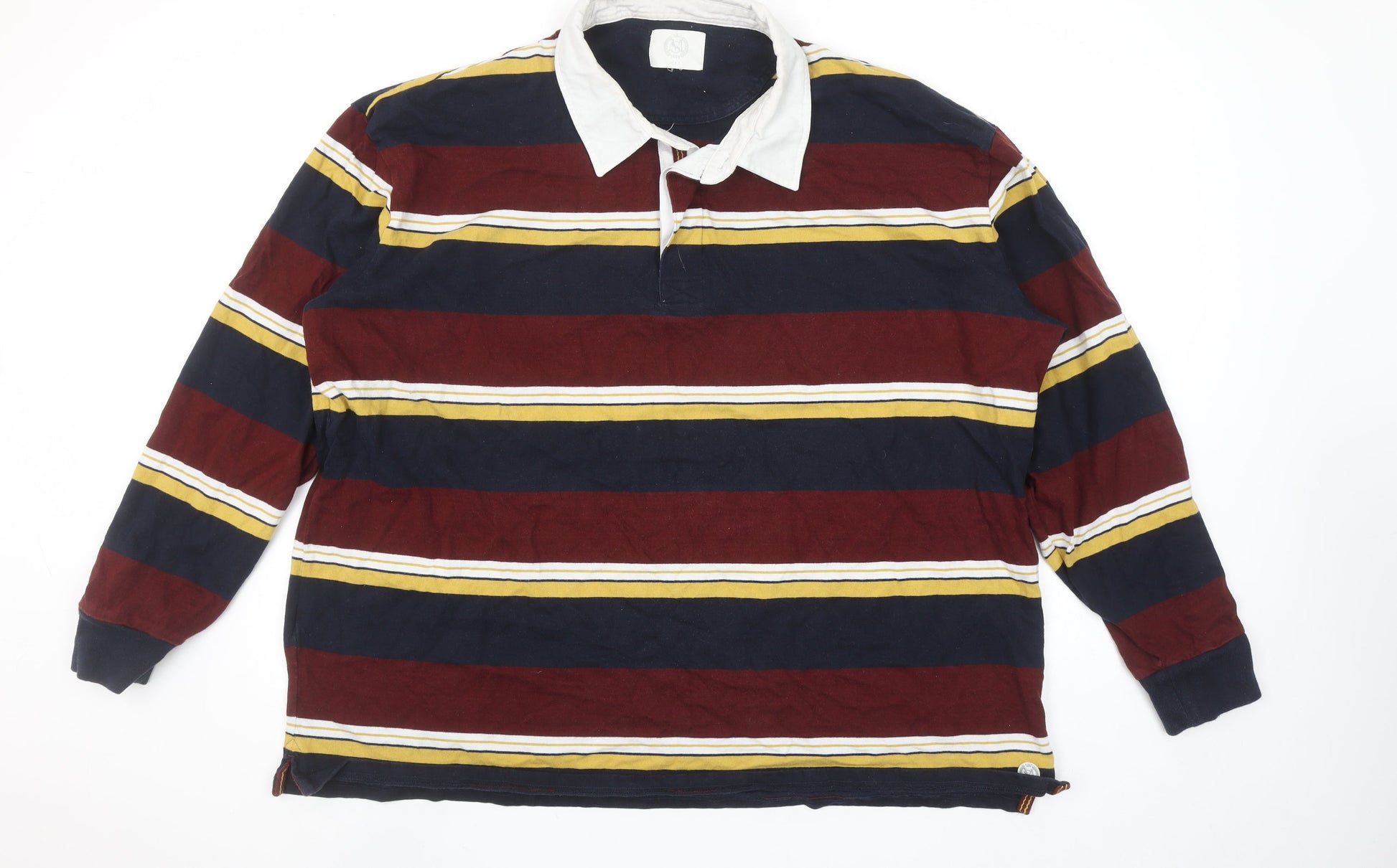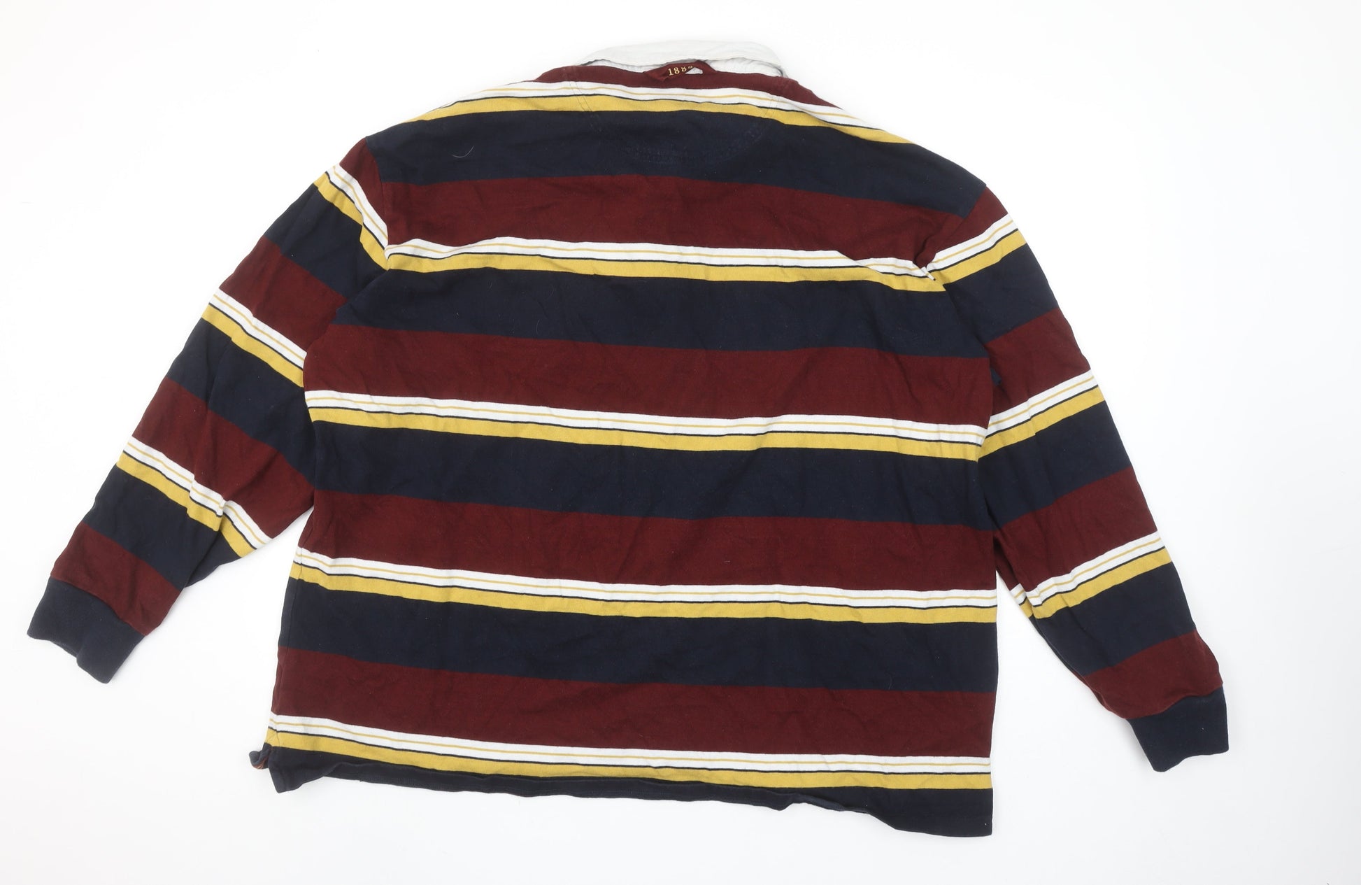 Marks and Spencer Men's Claret Stripe Long Sleeve Polo 3XL Regular Fit
