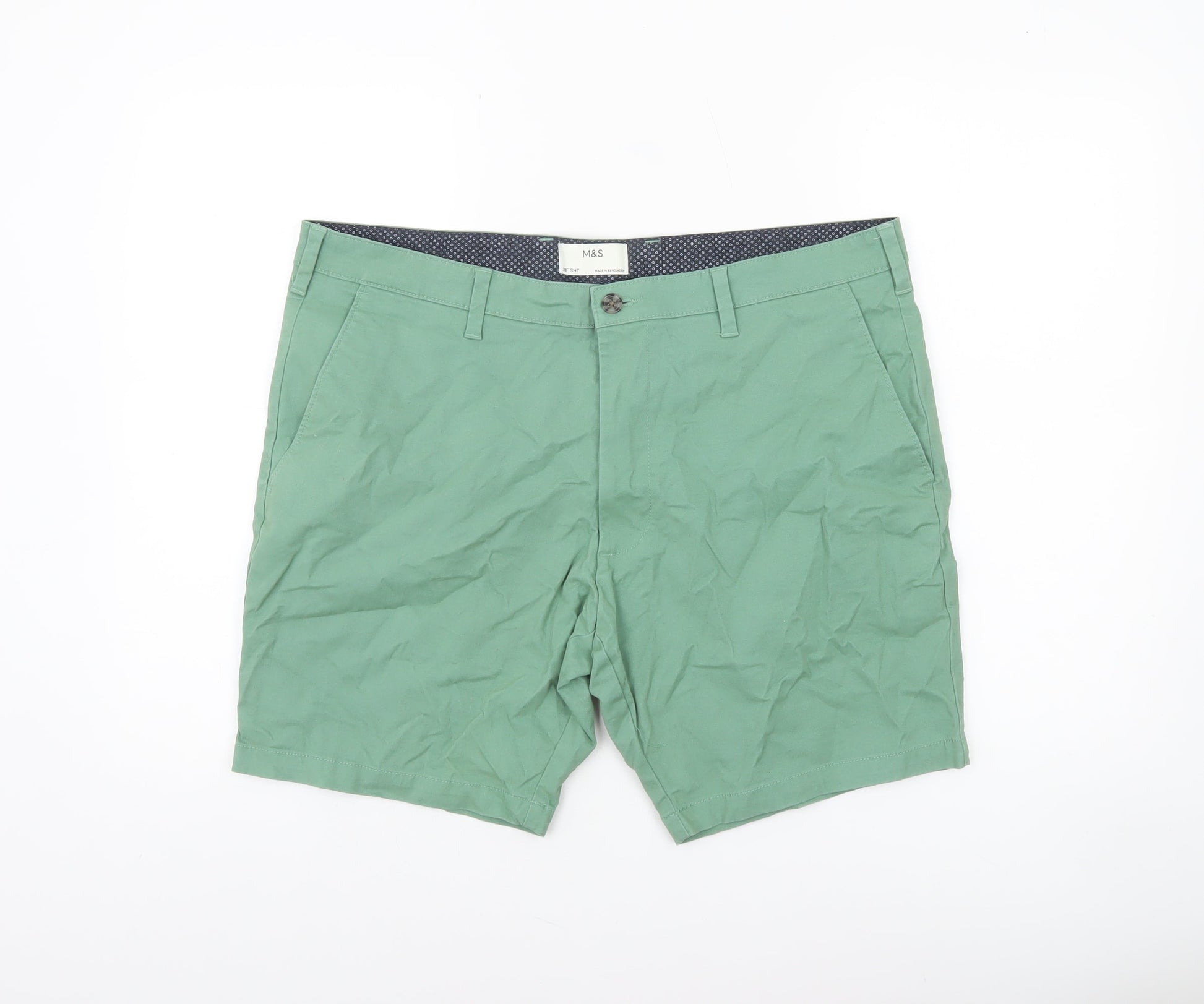 Marks and Spencer Men's Green Chino Shorts Size 38 Casual Cotton Stretch