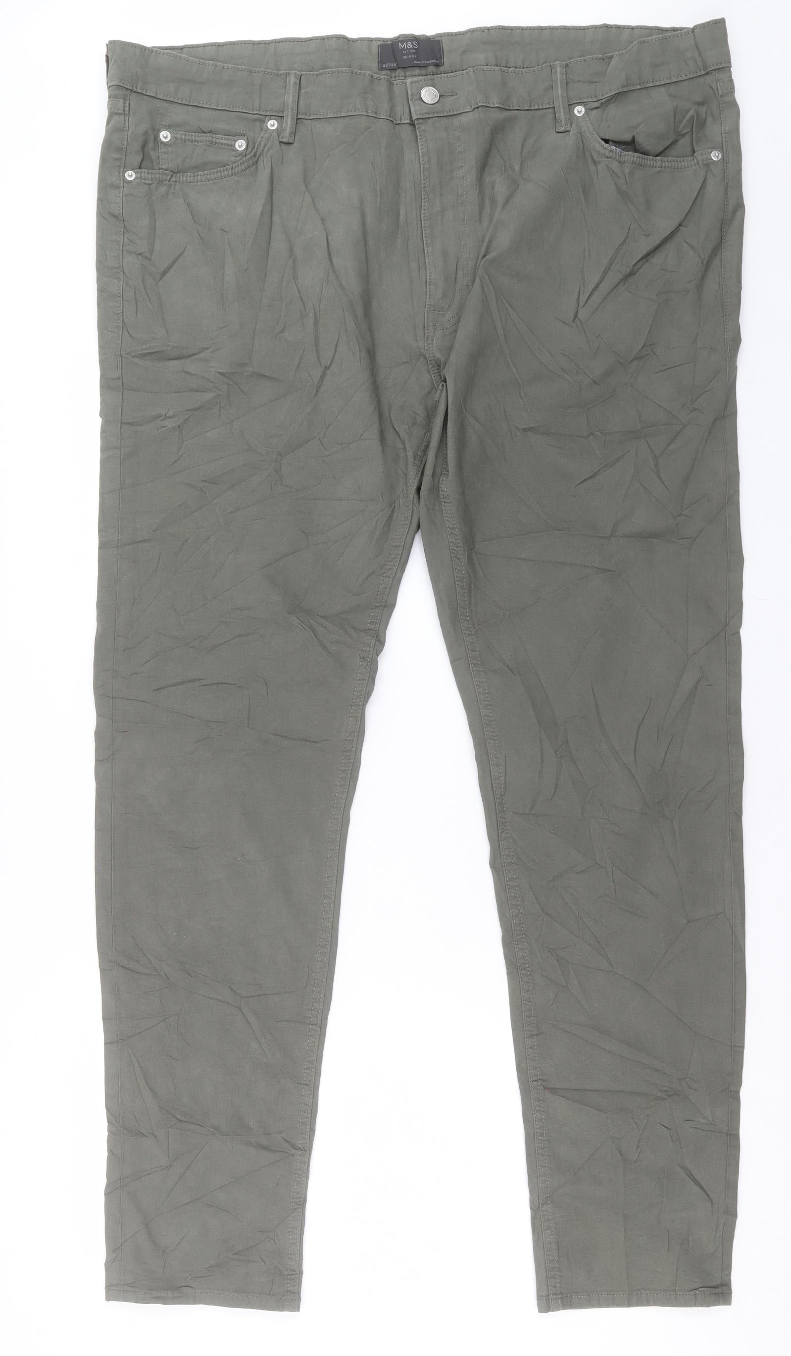 Marks and Spencer Mens Green Cotton Skinny Jeans Size 44 in L33 in Regular Button - Long Leg