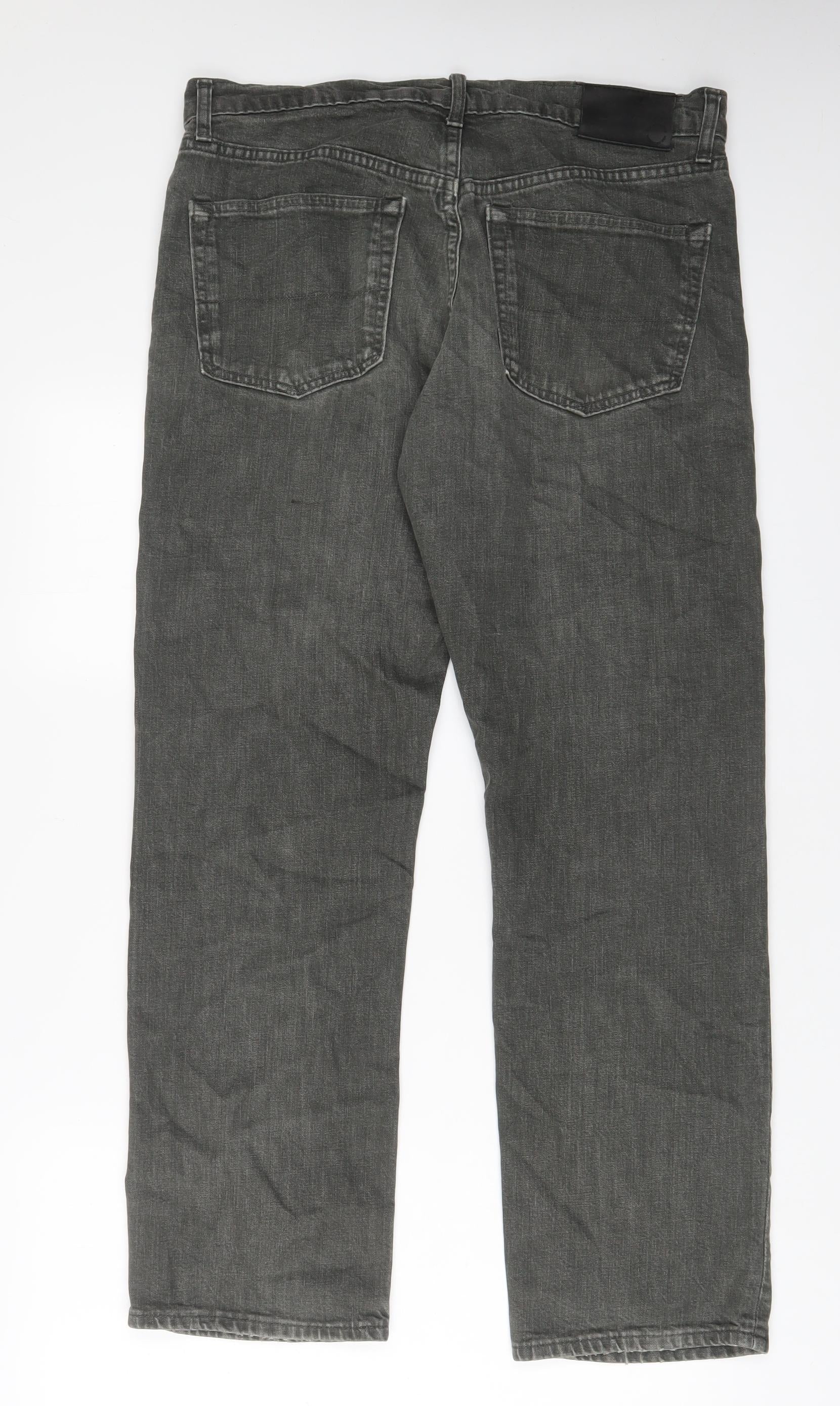 Marks and Spencer Mens Green Cotton Straight Jeans Size 32 in L31 in Regular Zip