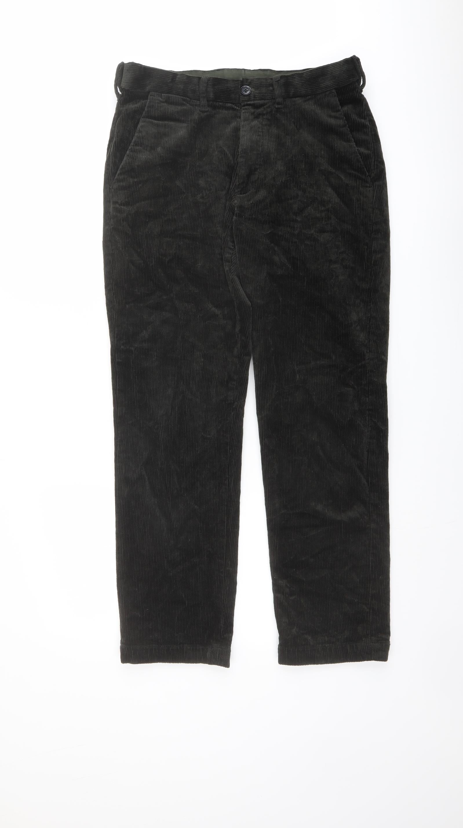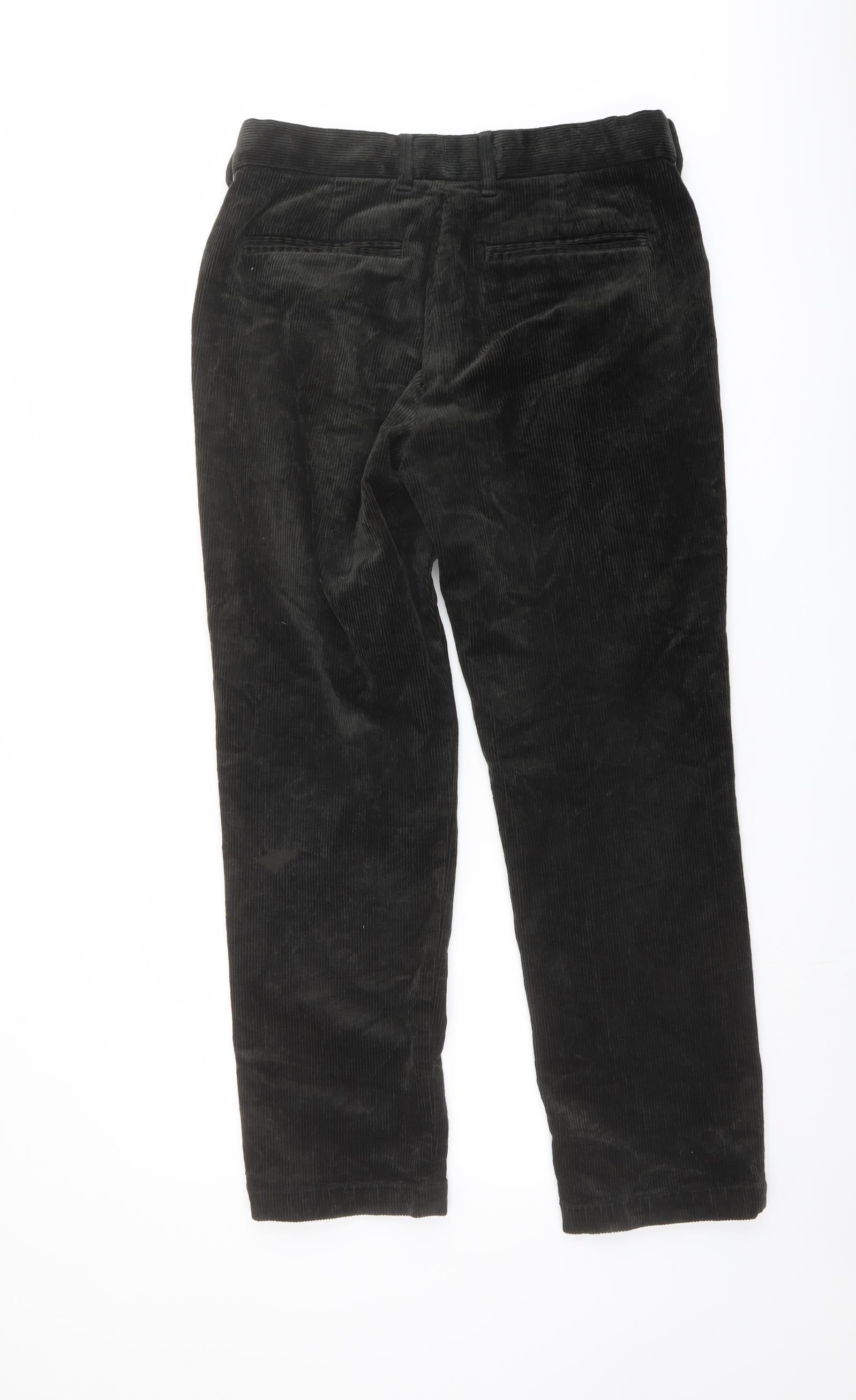 Marks and Spencer Mens Green Cotton Trousers Size 30 in L28 in Regular Button