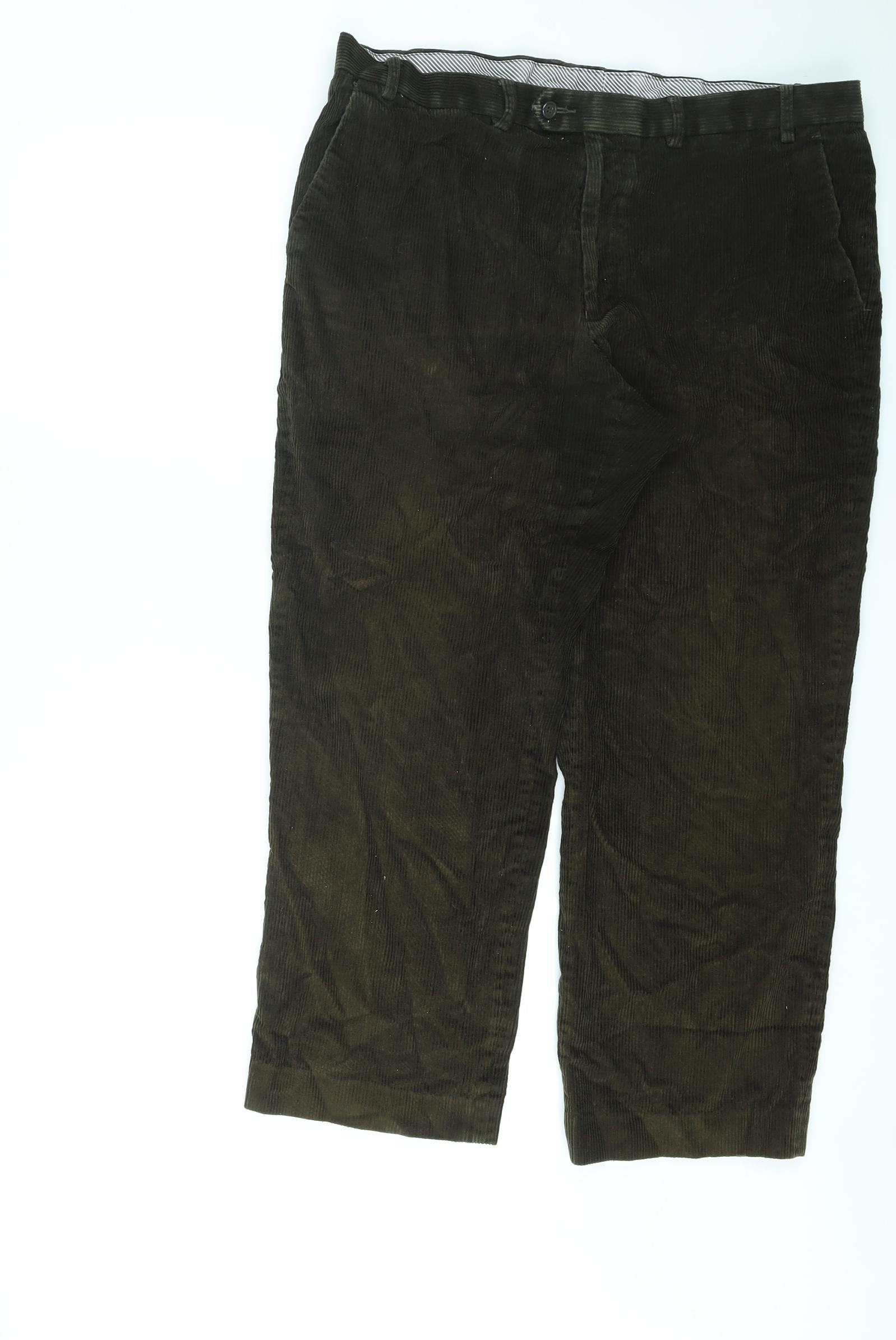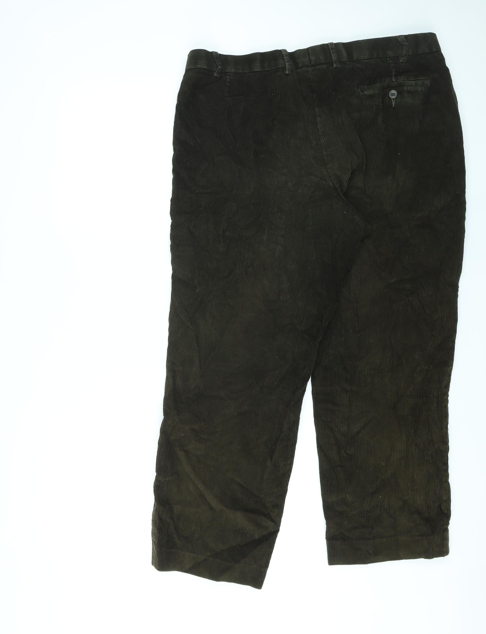 Marks and Spencer Mens Green Cotton Trousers Size 38 in L26 in Regular Zip