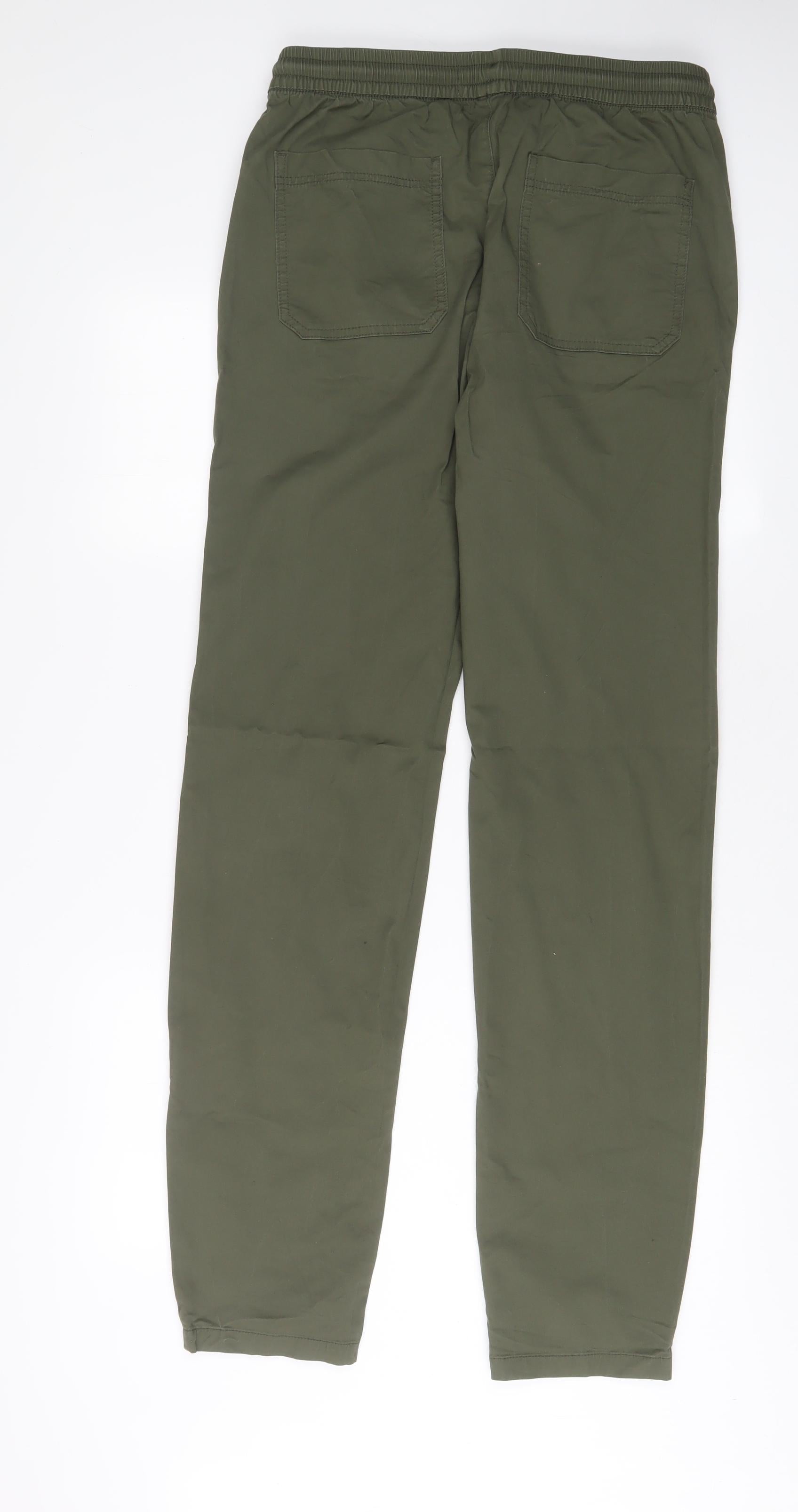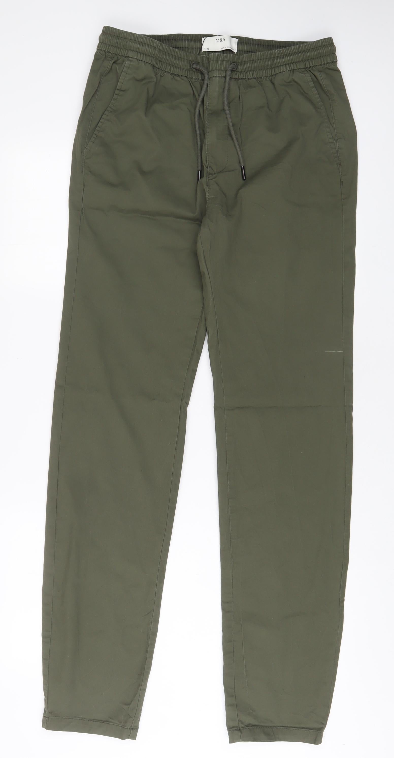Marks and Spencer Mens Green Cotton Trousers Size S L33 in Regular Drawstring - Long Leg