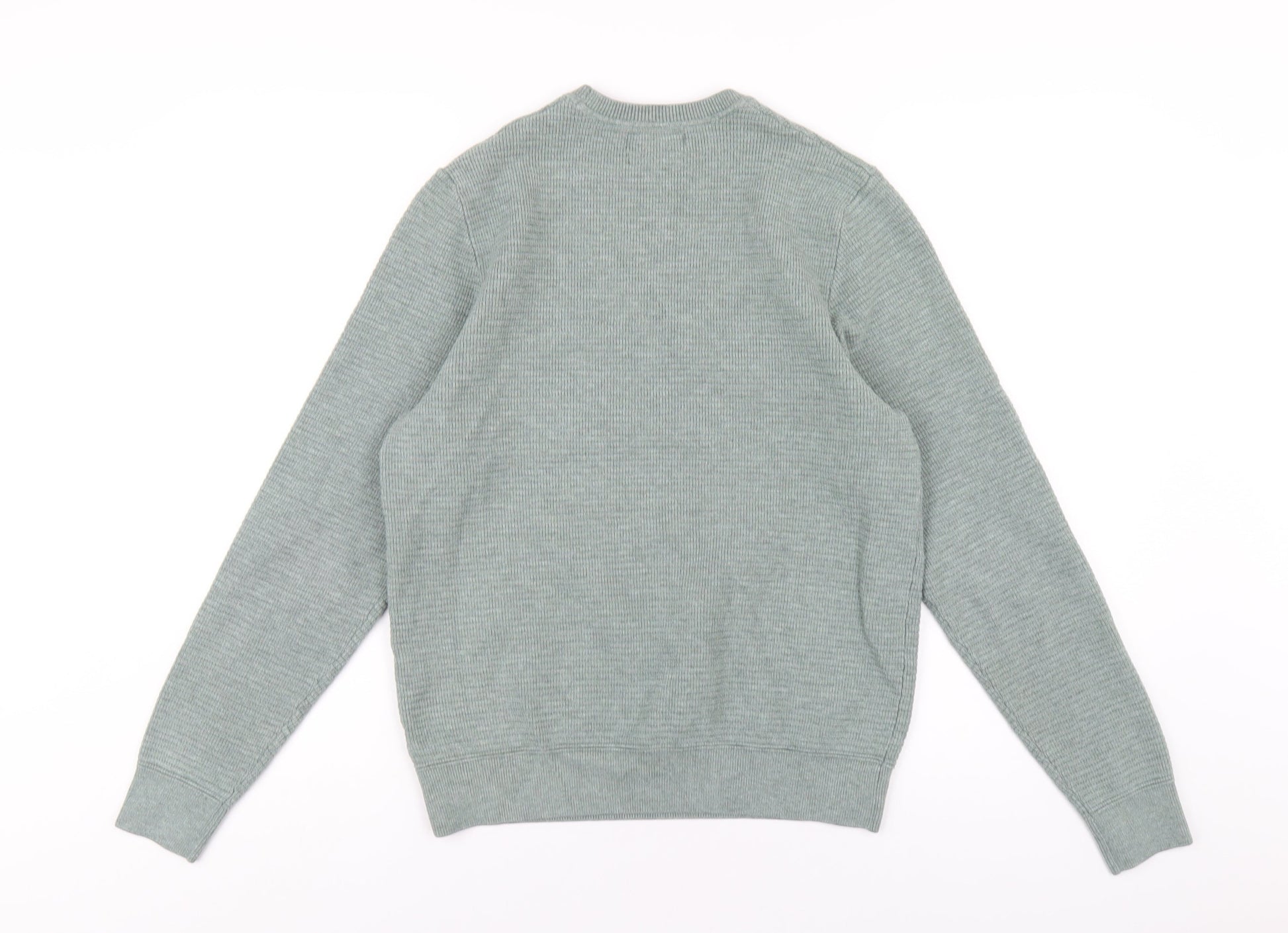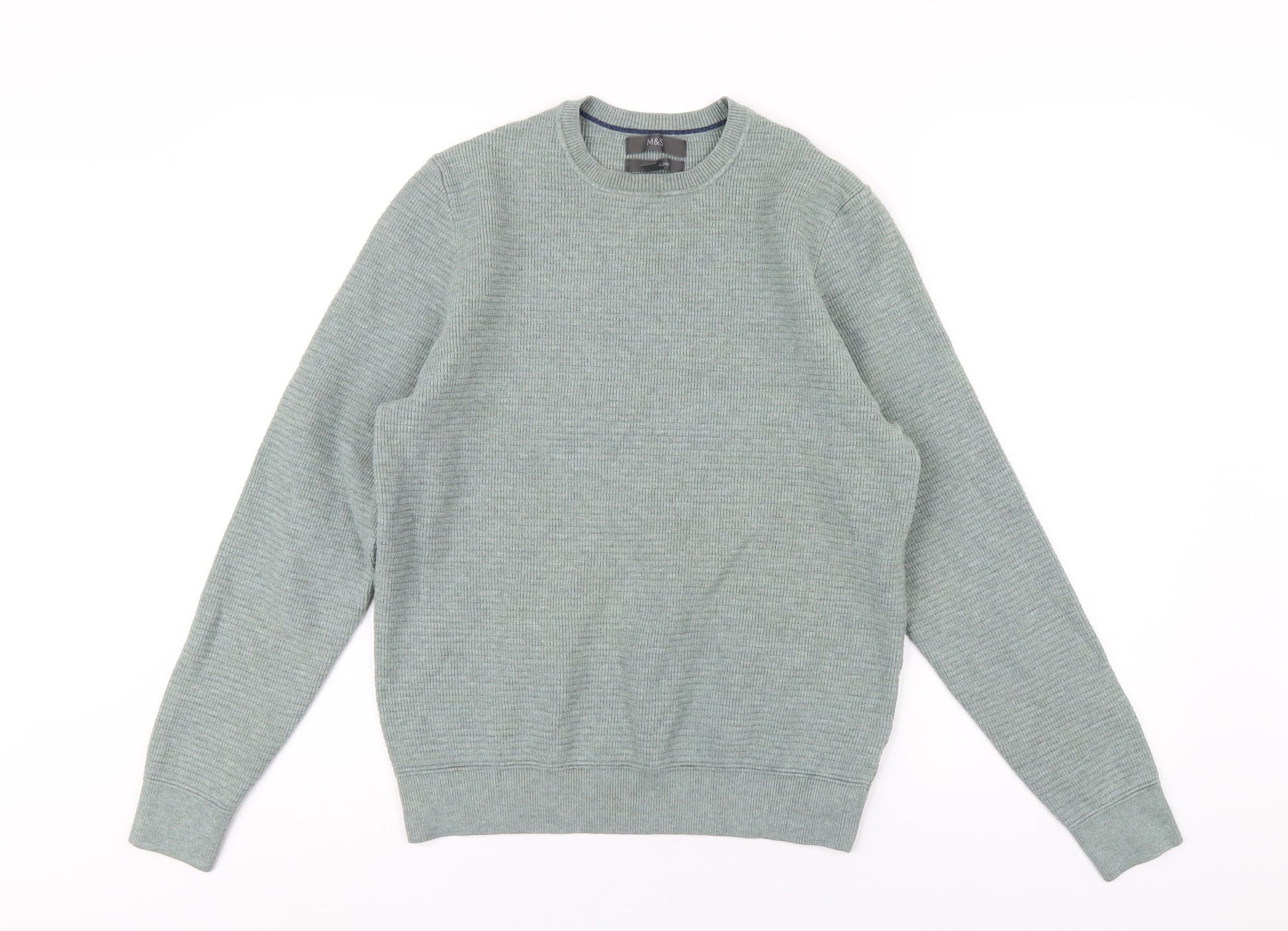 Marks and Spencer Mens Green Crew Neck Polyester Pullover Jumper Size M Long Sleeve