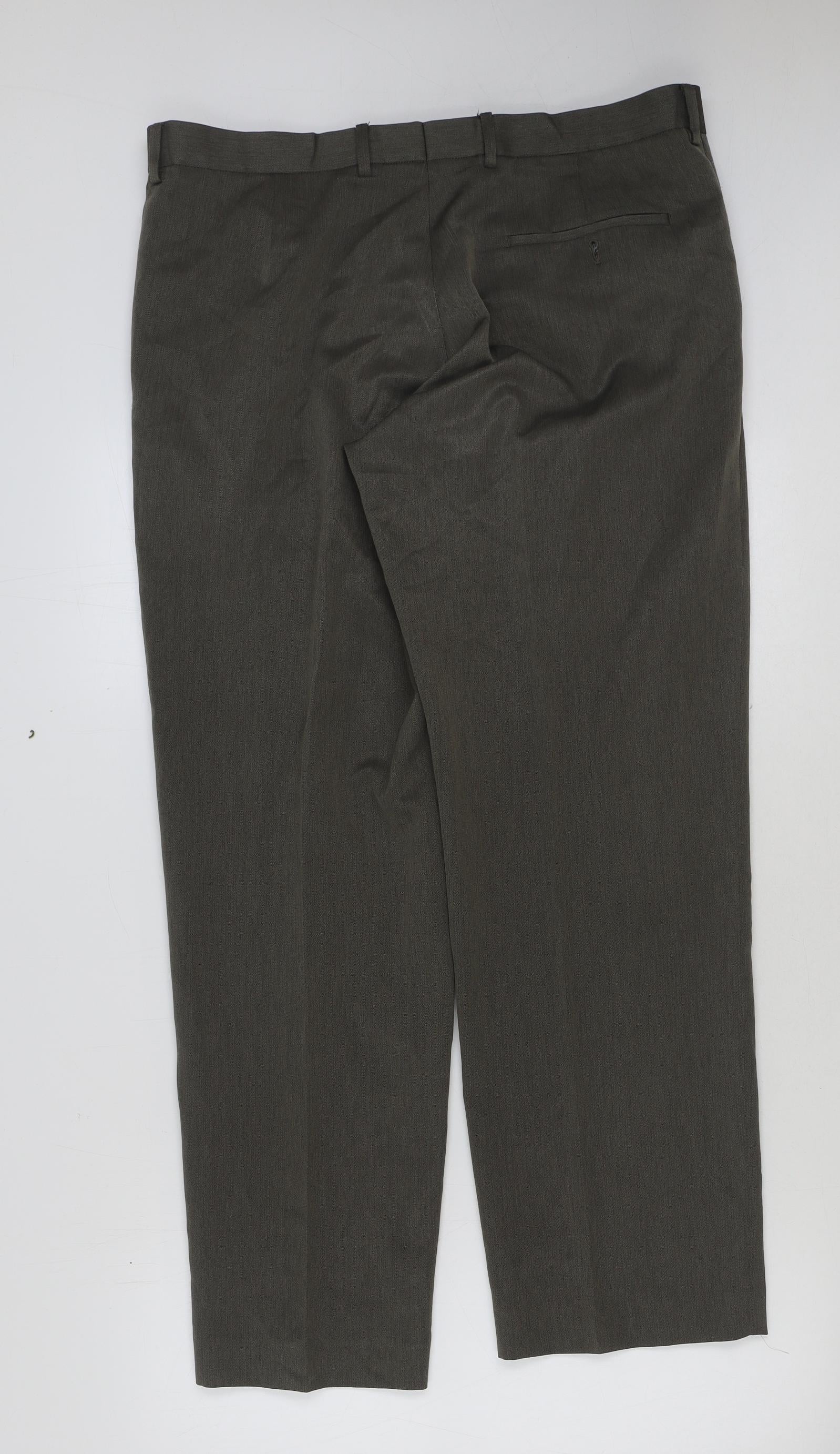 Marks and Spencer Mens Green Polyester Trousers Size 36 in L31 in Regular Hook & Eye