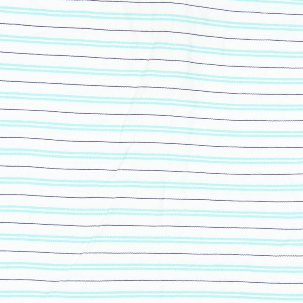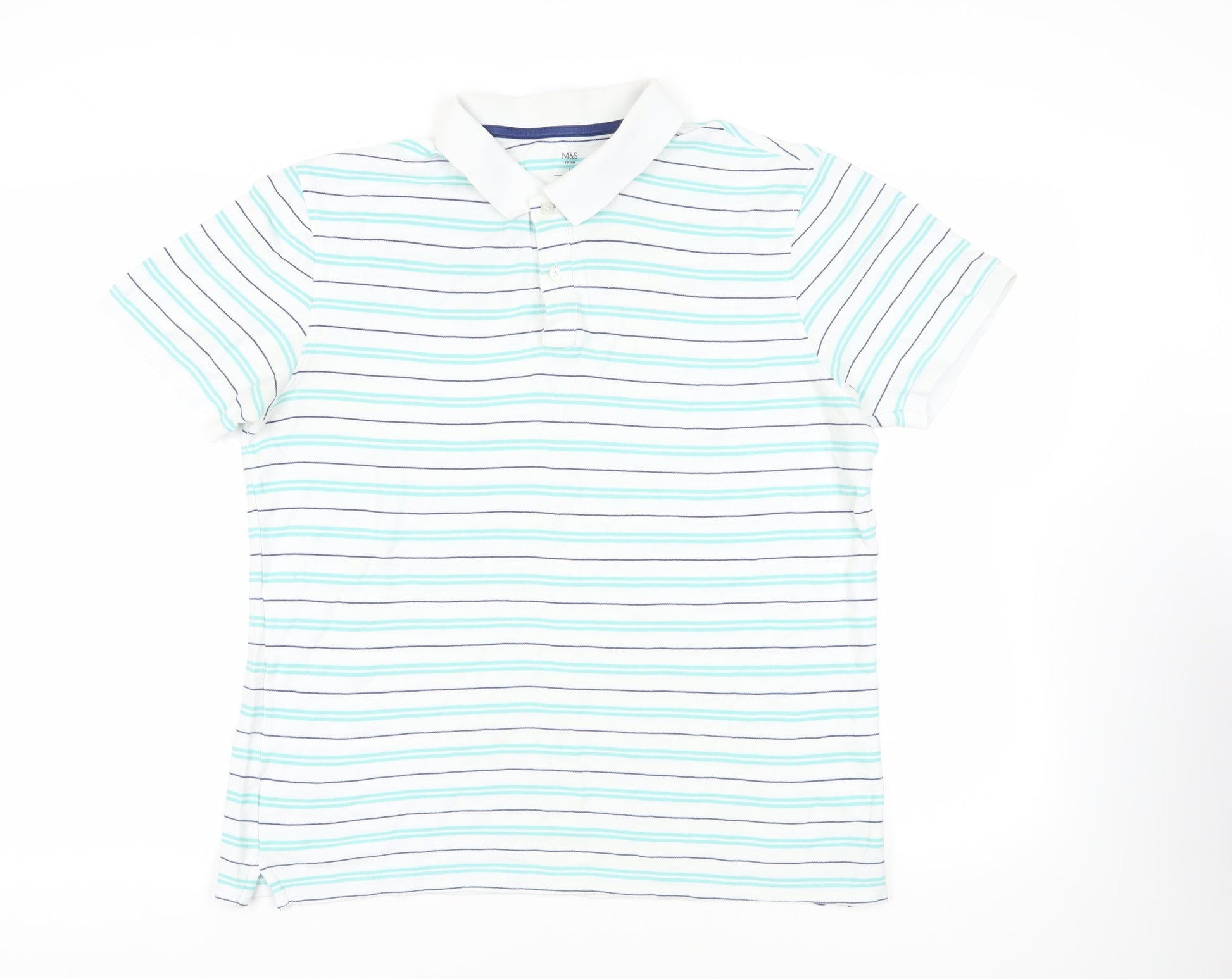 Marks and Spencer Mens Green Striped Cotton Polo Size L Collared Button