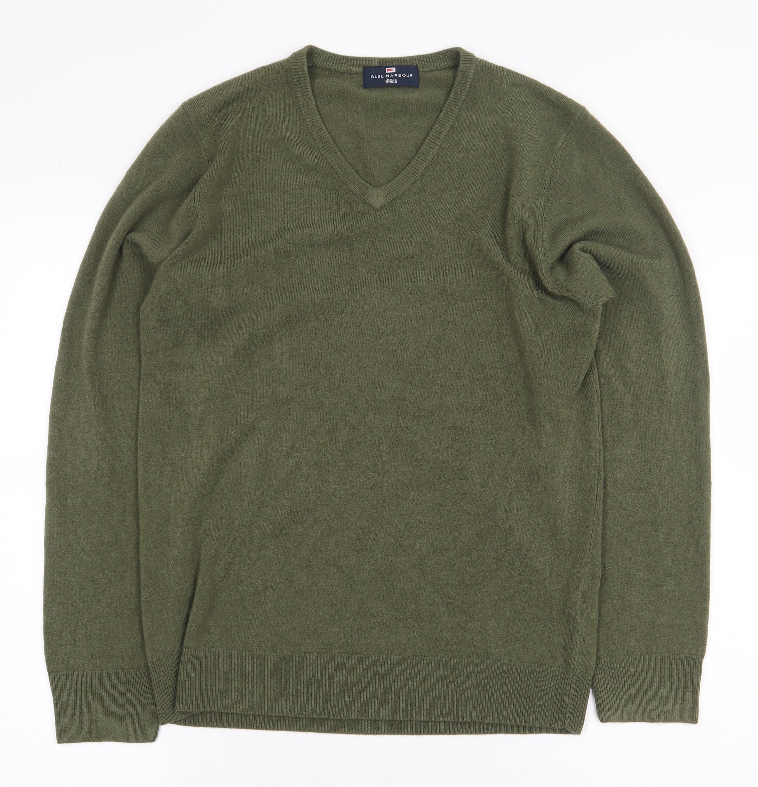 Marks and Spencer Mens Green V-Neck Acrylic Pullover Jumper Size S