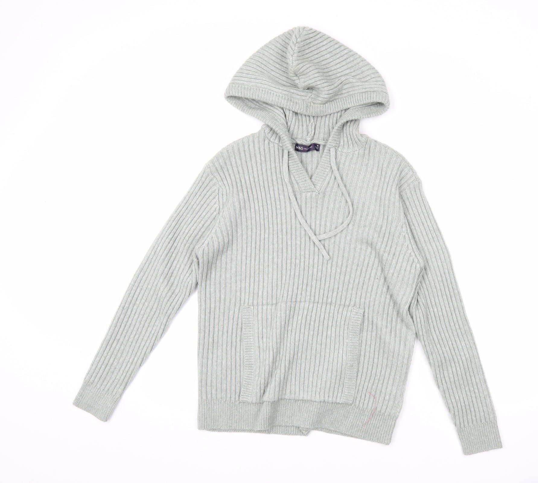 Marks and Spencer Mens Green V-Neck Polyester Pullover Jumper Size M Long Sleeve