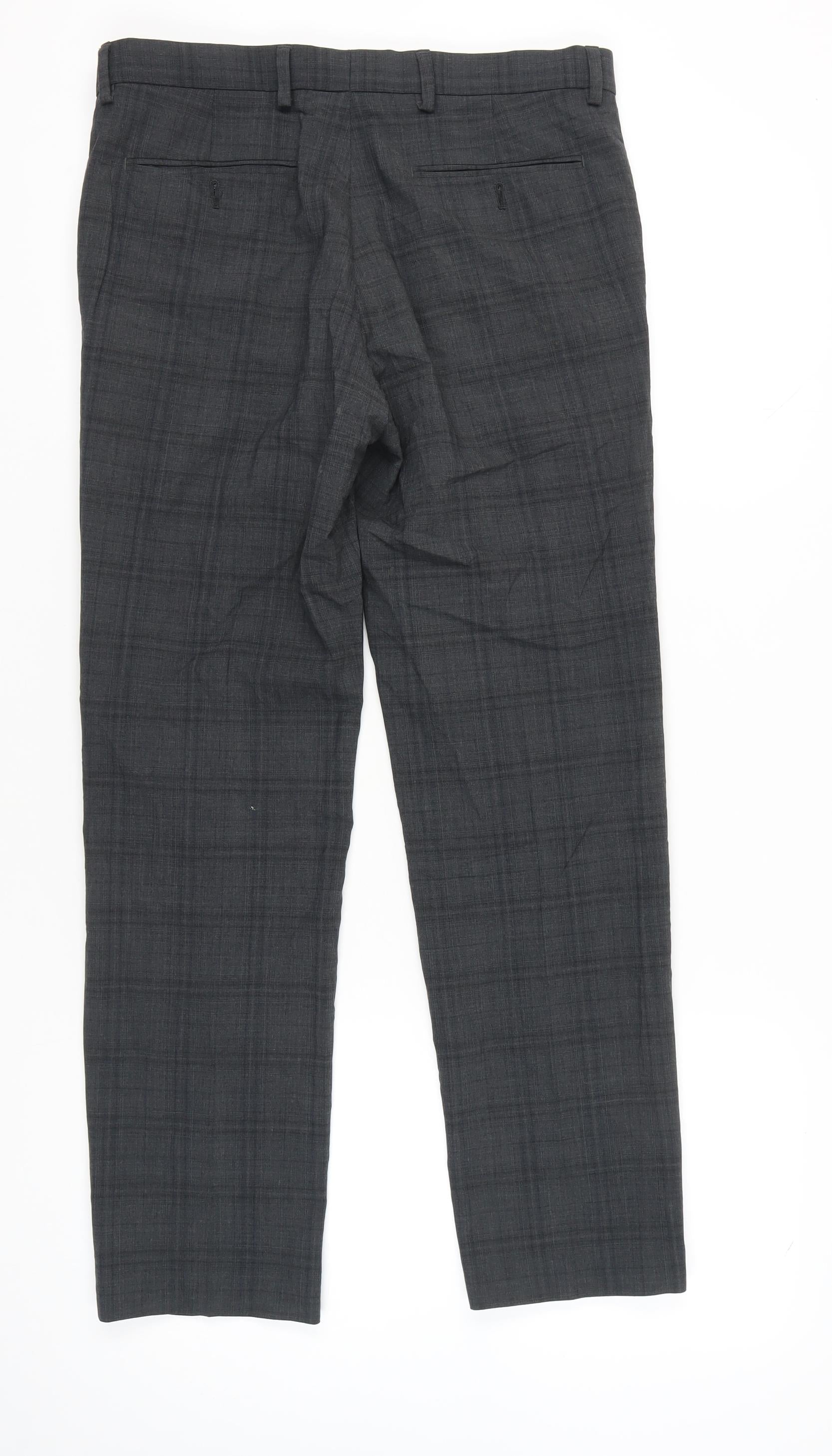 Marks and Spencer Men's Grey Check Slim Fit Wool Blend Dress Trousers 32W 31L