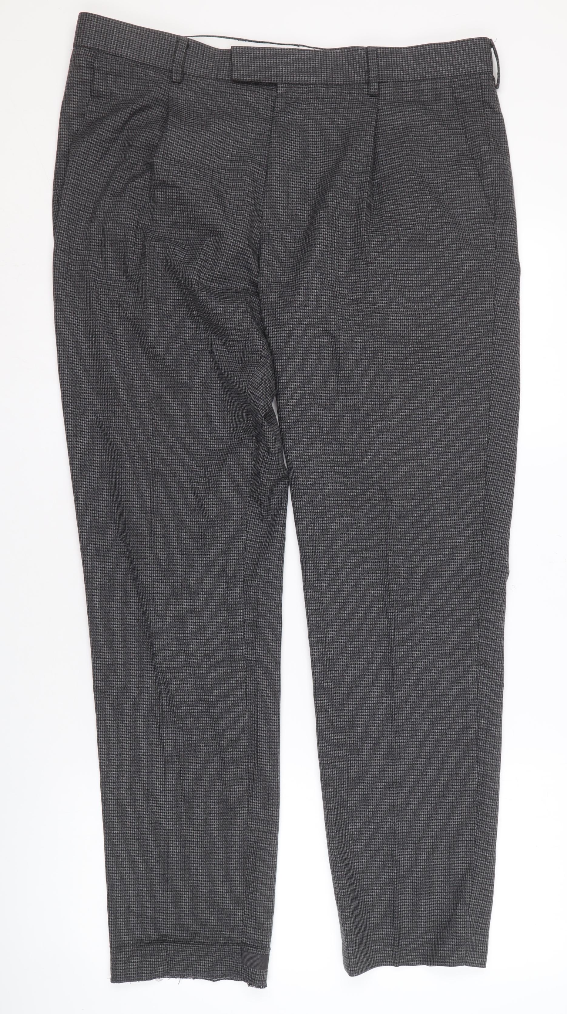 Marks and Spencer Men's Grey Check Trousers, 36 Regular