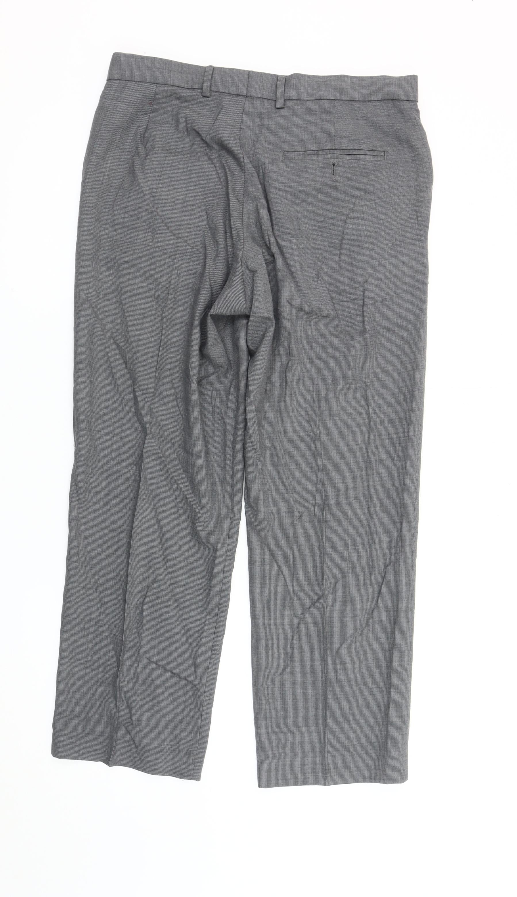 Marks and Spencer Men's Grey Check Wool Blend Dress Pants 32W 29L Regular