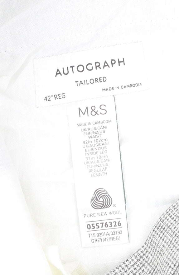 Marks and Spencer Men's Grey Check Wool Dress Pants 42W 31L Classic Fit