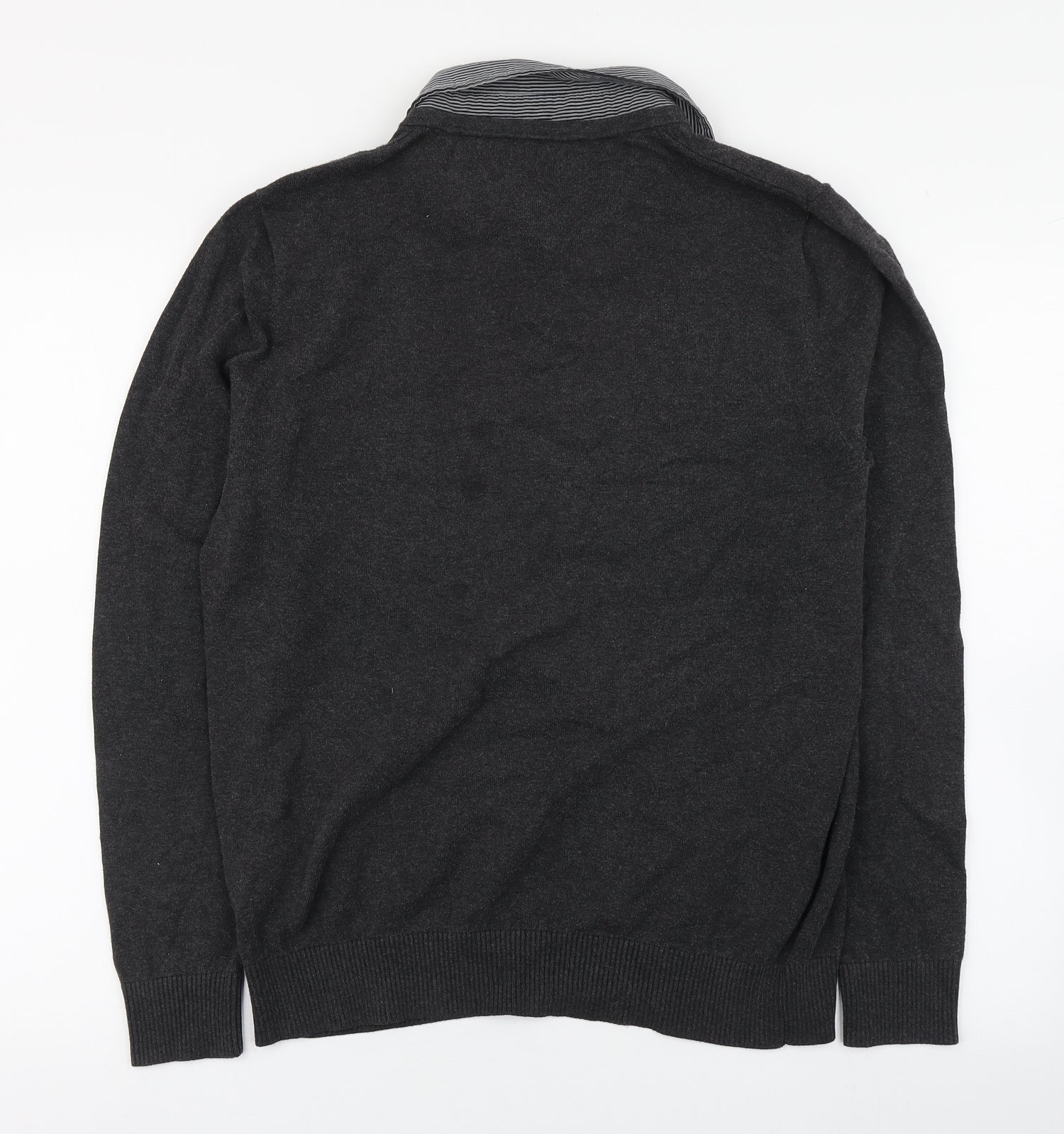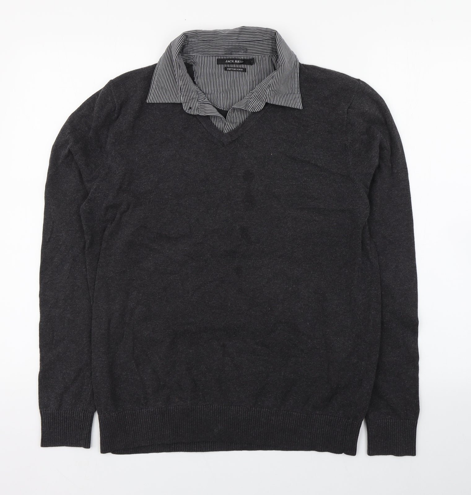 Marks and Spencer Mens Grey Collared Cotton Pullover Jumper Size M