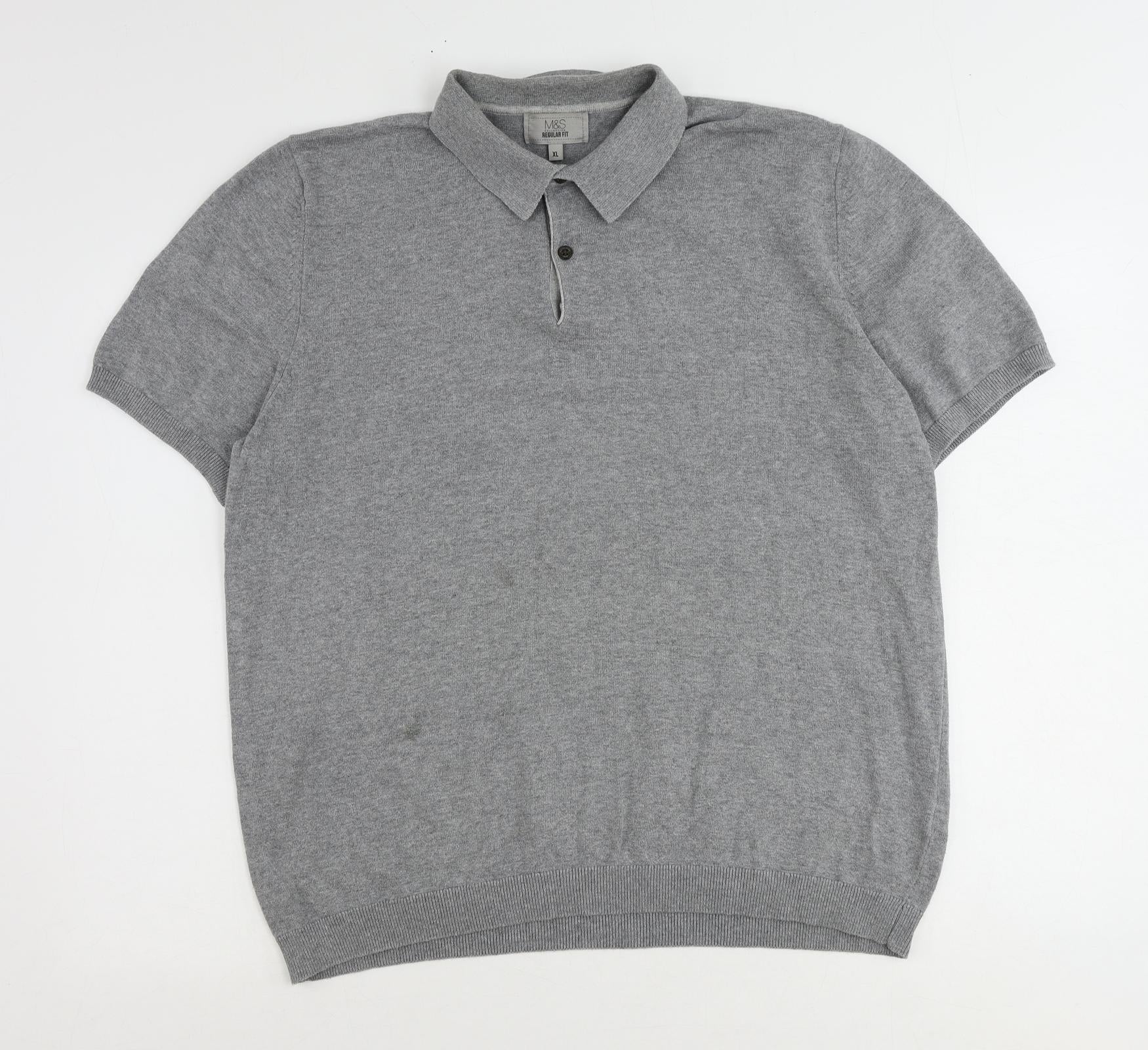 Marks and Spencer Mens Grey Collared Cotton Pullover Jumper Size XL Short Sleeve