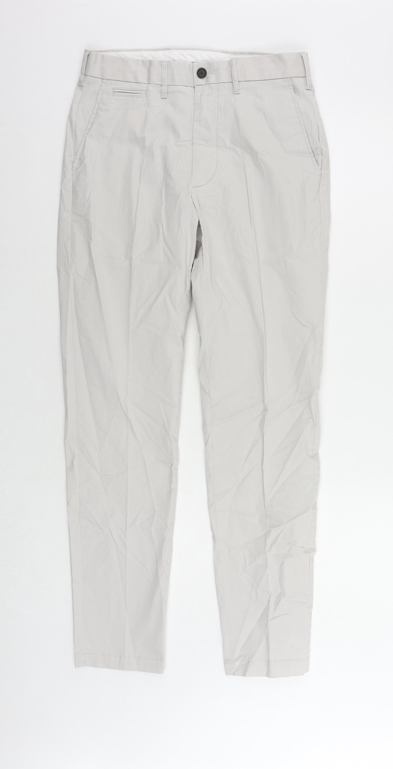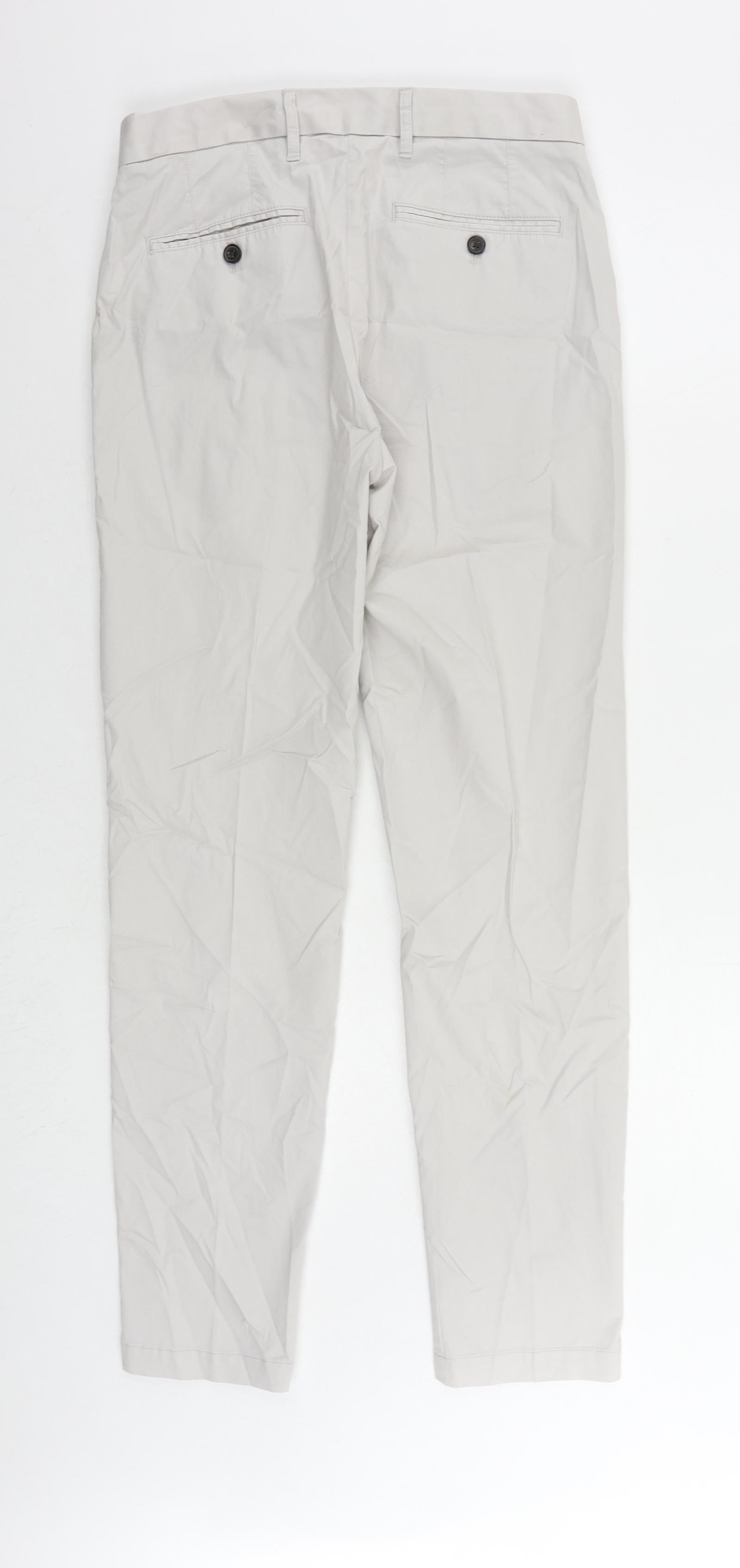 Marks and Spencer Mens Grey Cotton Chino Trousers Size 30 in L31 in Slim Zip
