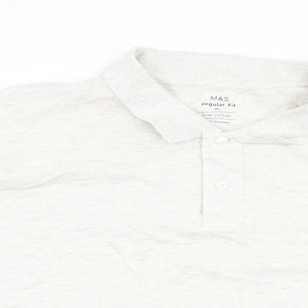 Marks and Spencer Mens Grey Cotton Polo Size XL Collared Button