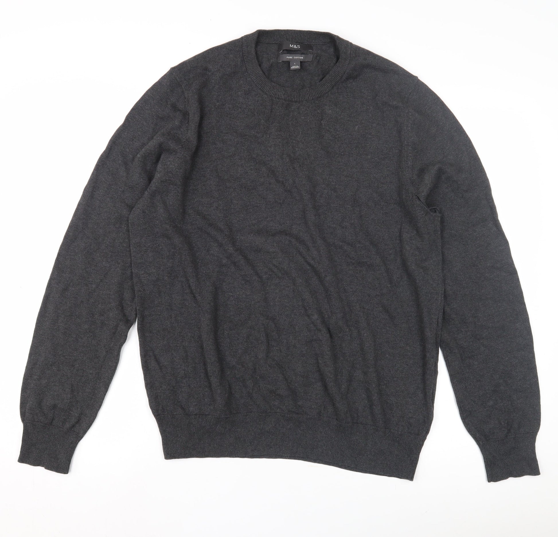 Marks and Spencer Men's Grey Cotton Pullover, Size L