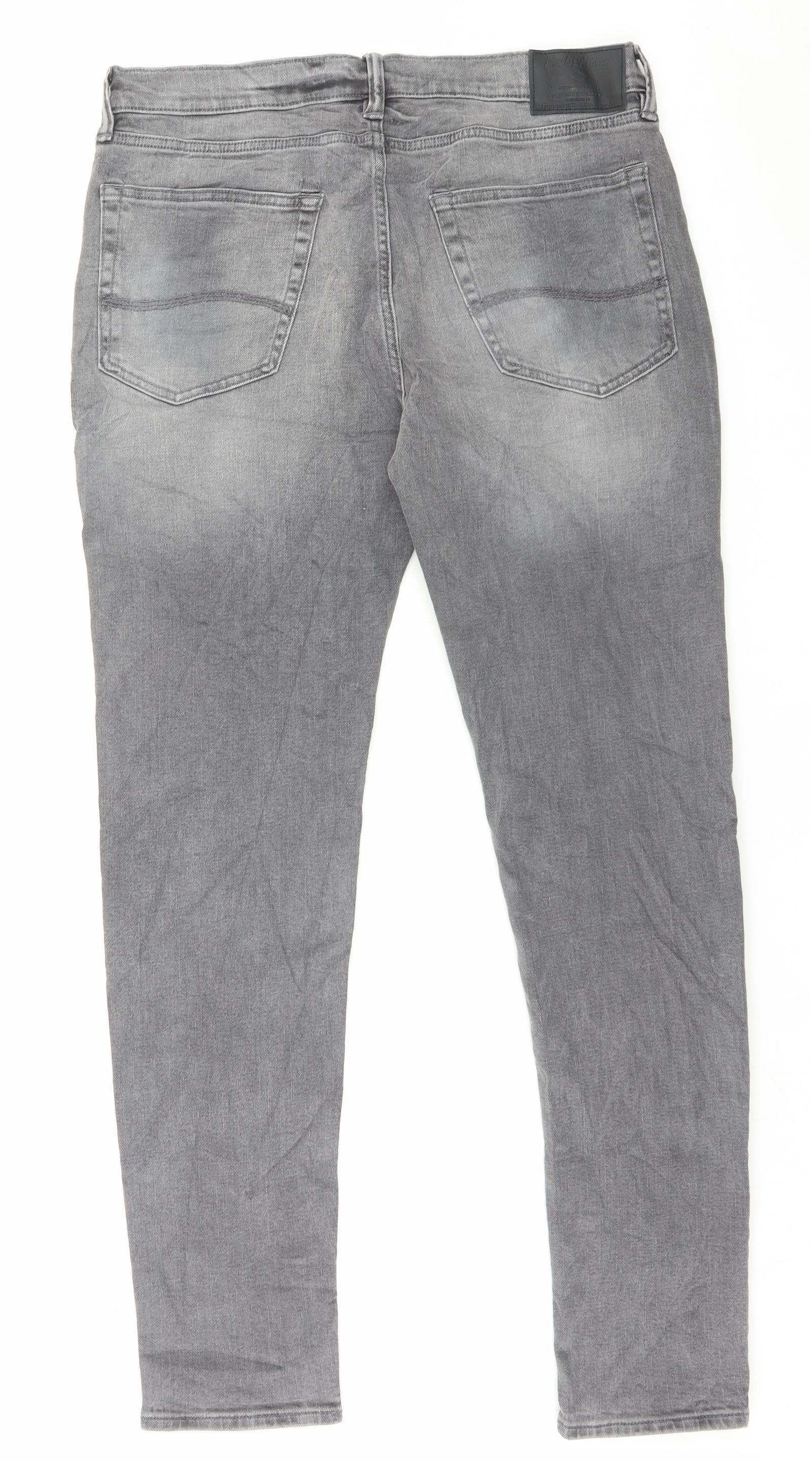 Marks and Spencer Mens Grey Cotton Skinny Jeans Size 34 in L31 in Regular Button