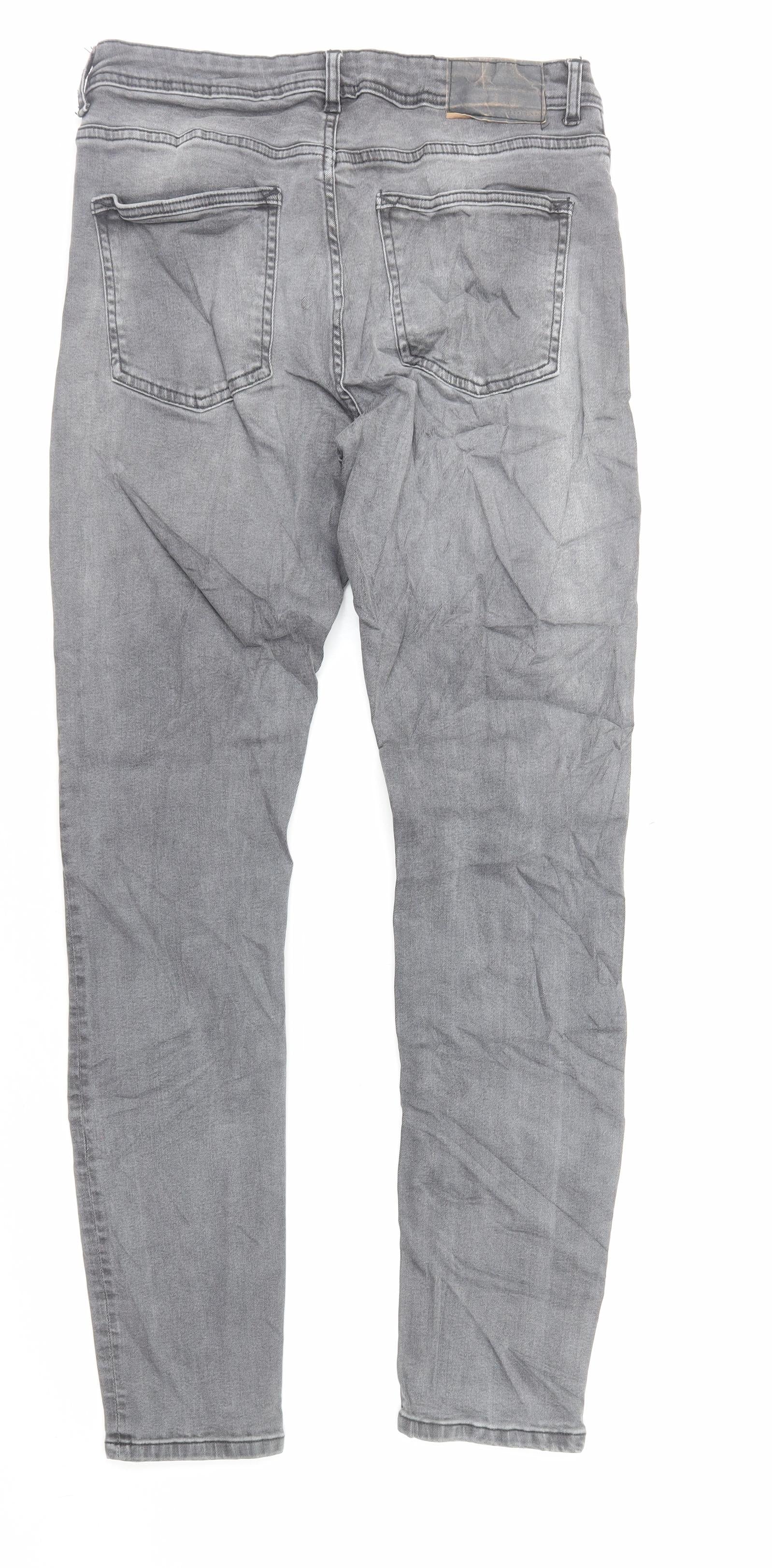 Marks and Spencer Mens Grey Cotton Skinny Jeans Size M L34 in Regular Button