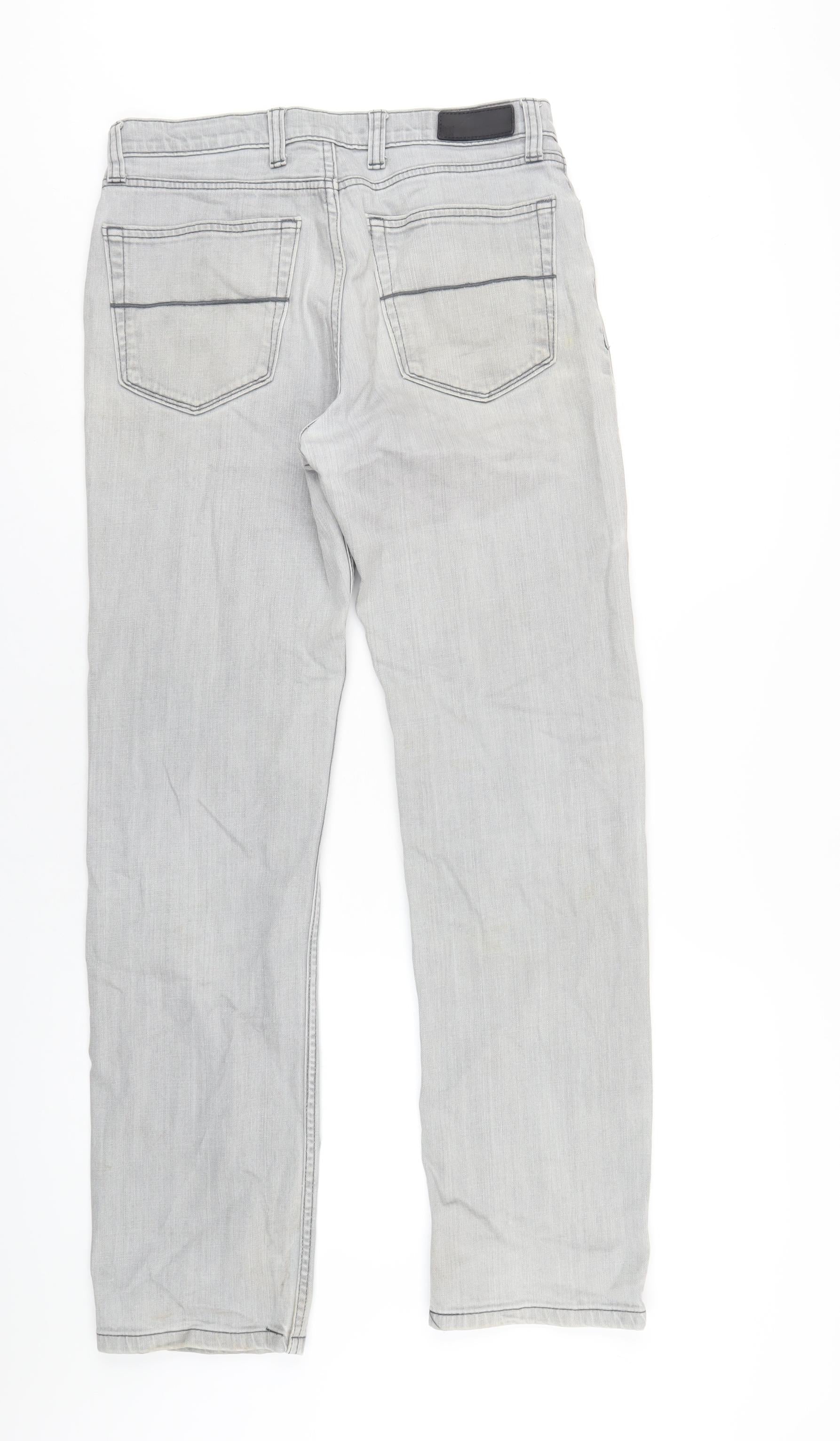 Marks and Spencer Mens Grey Cotton Straight Jeans Size 30 in L33 in Regular Zip