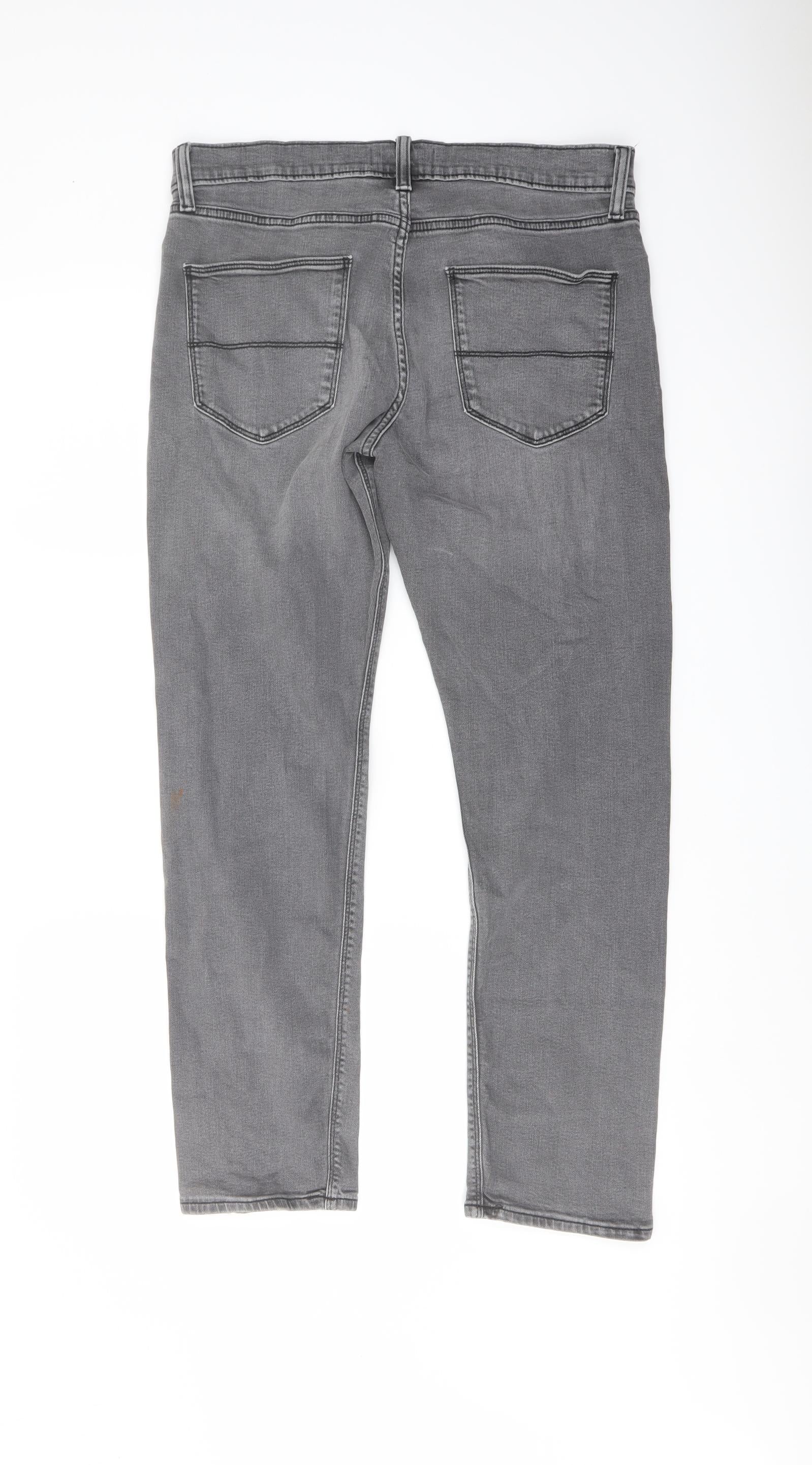 Marks and Spencer Mens Grey Cotton Straight Jeans Size 32 in L29 in Slim Button