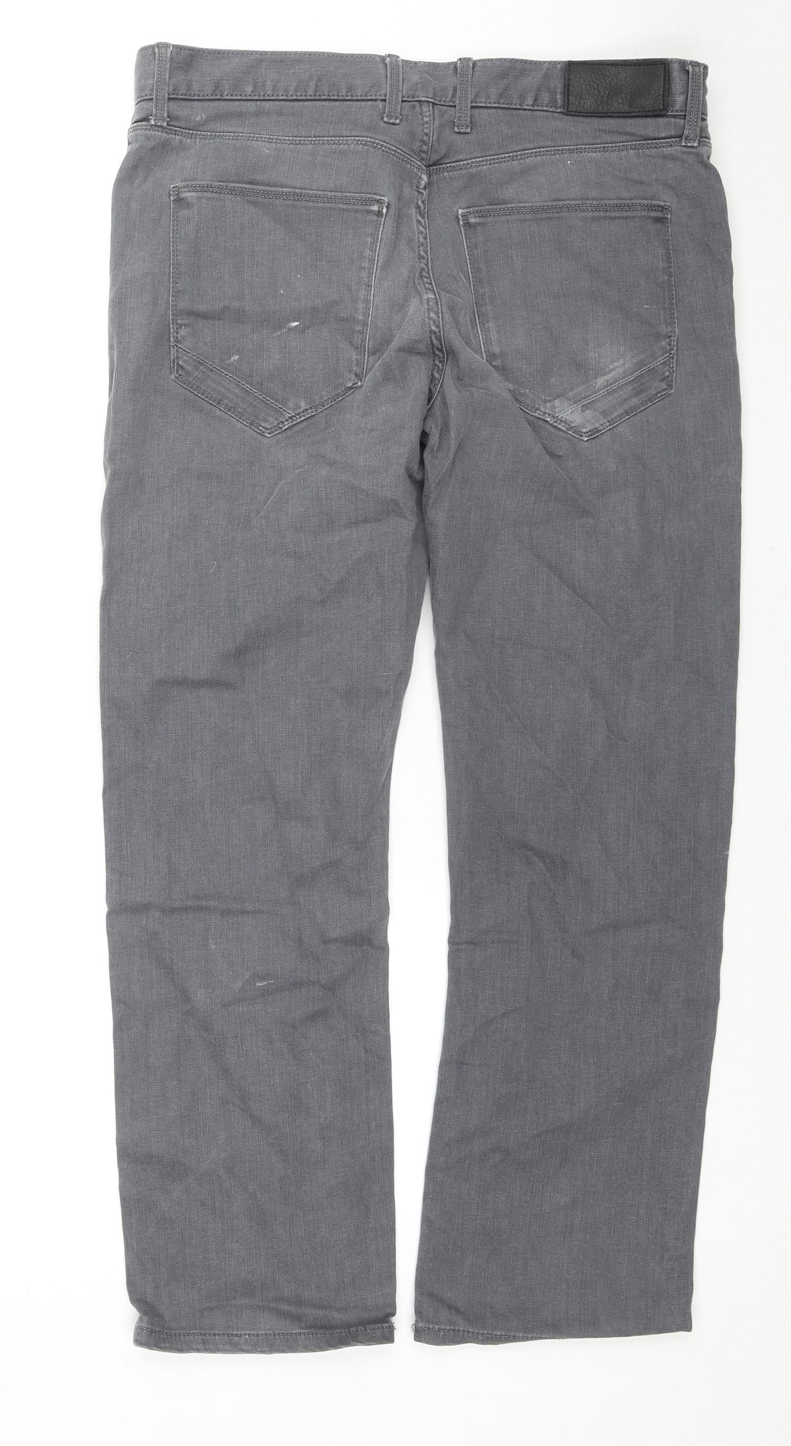Marks and Spencer Mens Grey Cotton Straight Jeans Size 34 in L29 in Regular Zip