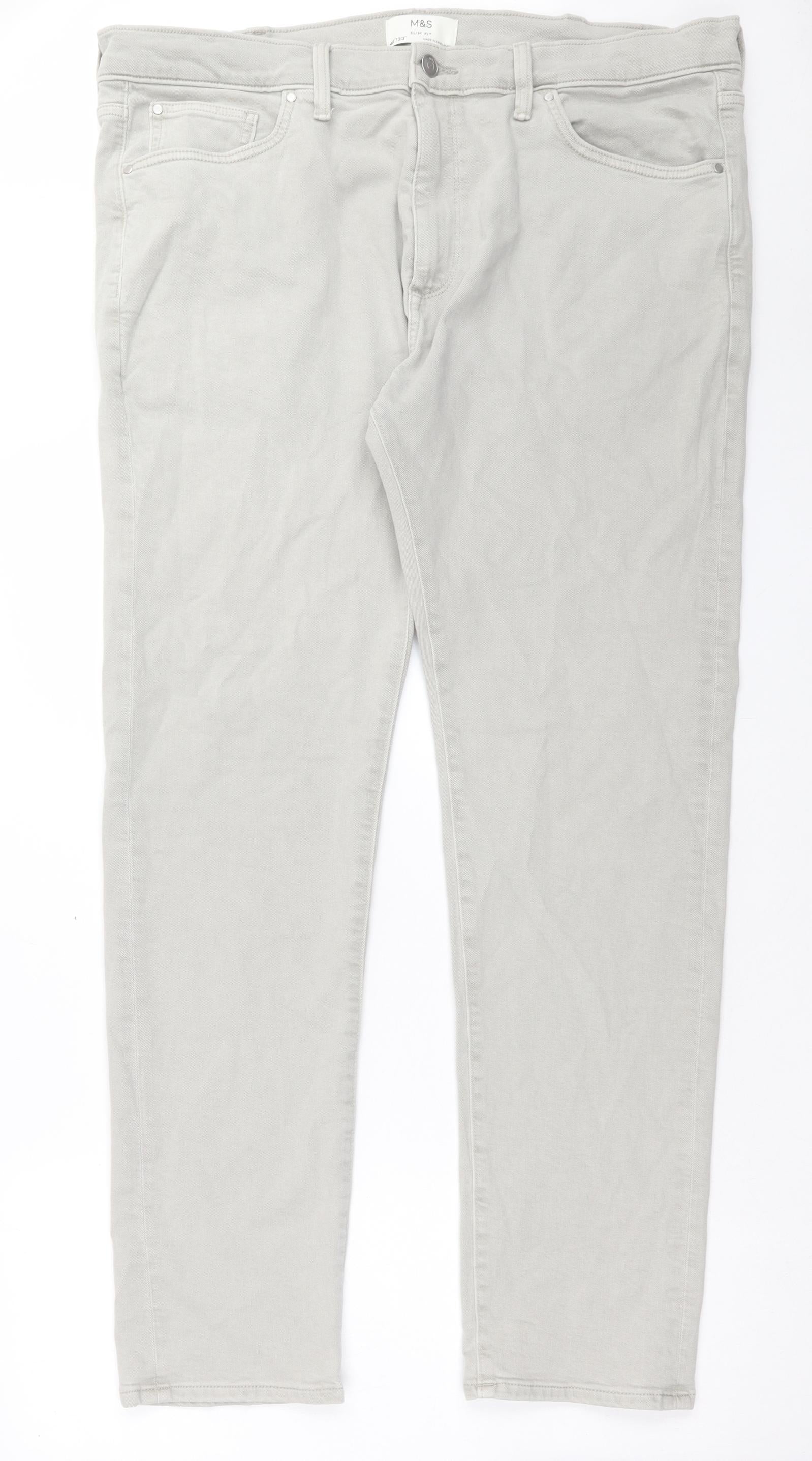 Marks and Spencer Mens Grey Cotton Straight Jeans Size 40 in L33 in Slim Button - Long Leg