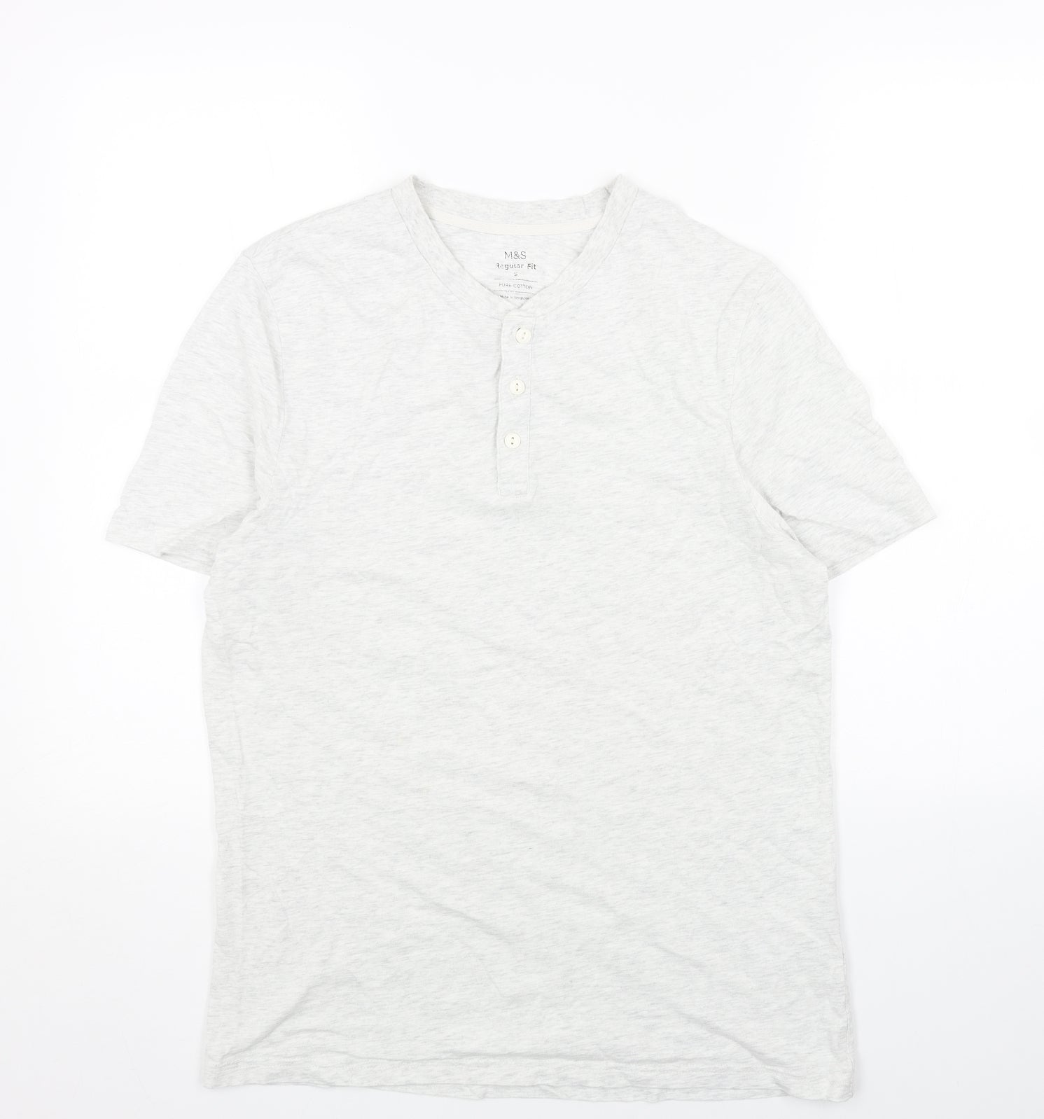 Marks and Spencer Mens Grey Cotton T-Shirt Size S Round Neck