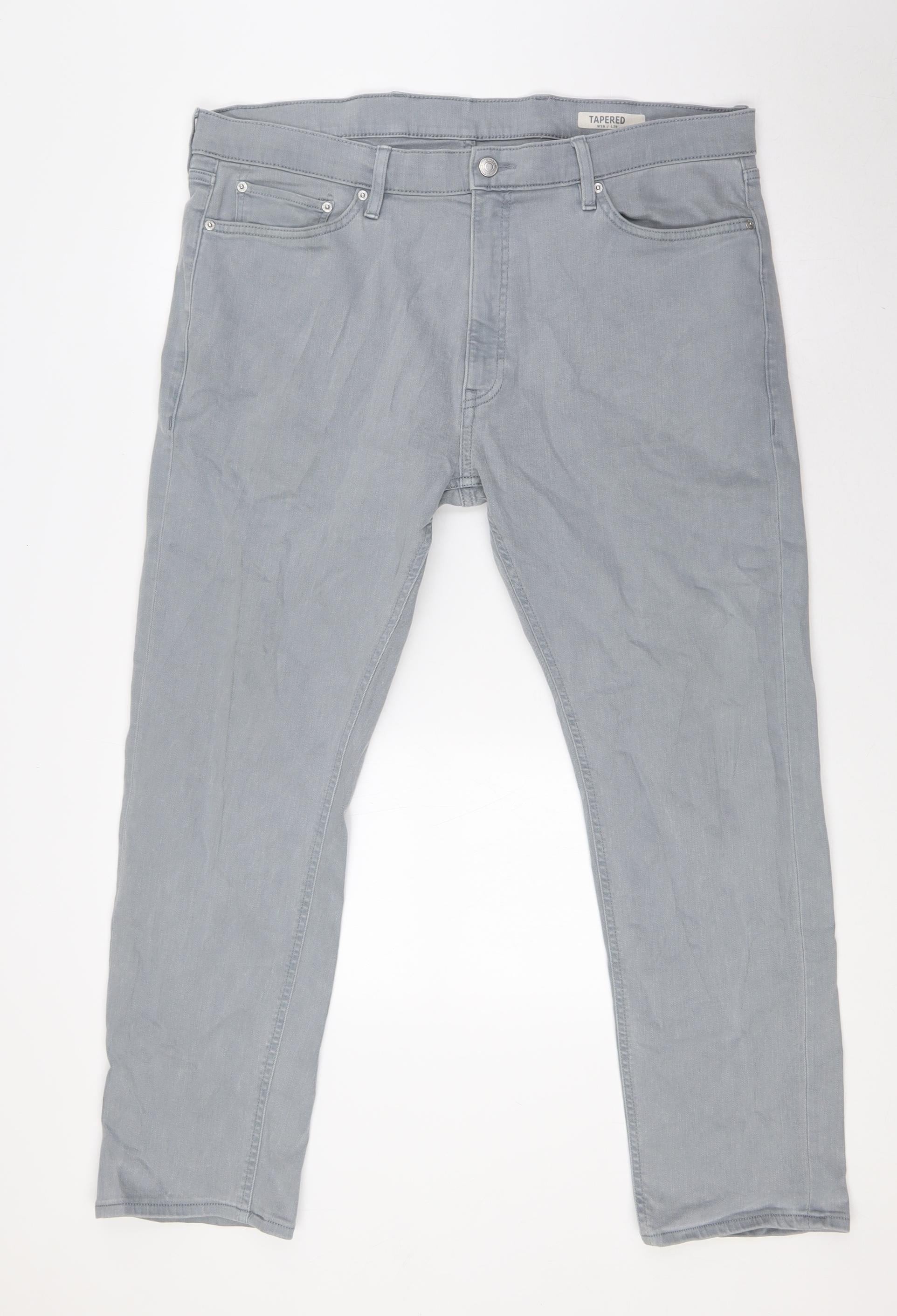 Marks and Spencer Mens Grey Cotton Tapered Jeans Size 38 in L29 in Regular Button