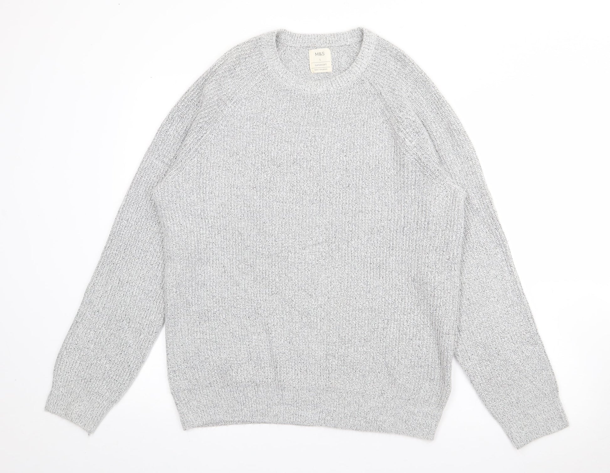 Marks and Spencer Mens Grey Crew Neck Polyamide Pullover Jumper Size L