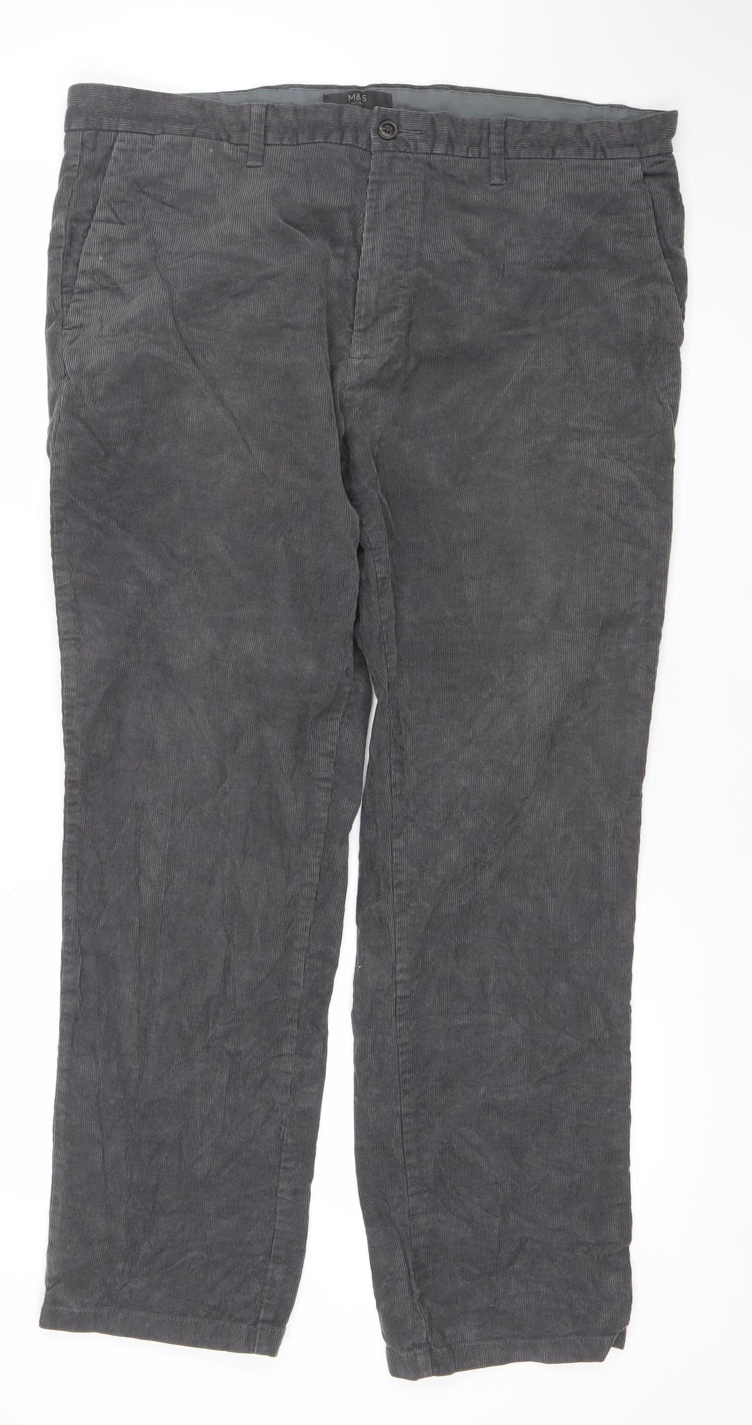 Marks and Spencer Men's Grey Linen Blend Regular Fit Trousers 40W 31L