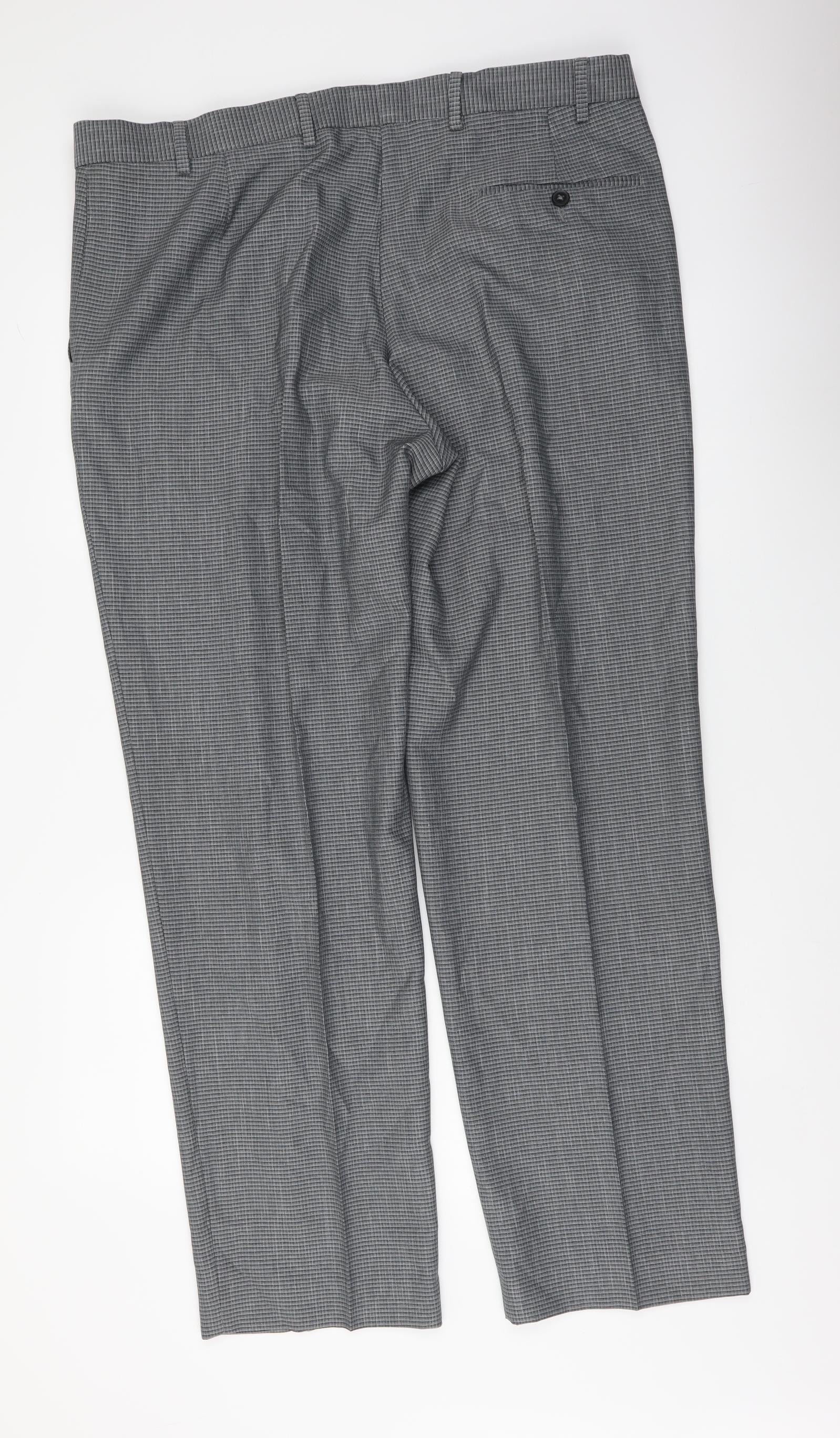 Marks and Spencer Mens Grey Plaid Polyester Dress Pants Trousers Size 38 in L31 in Regular Button